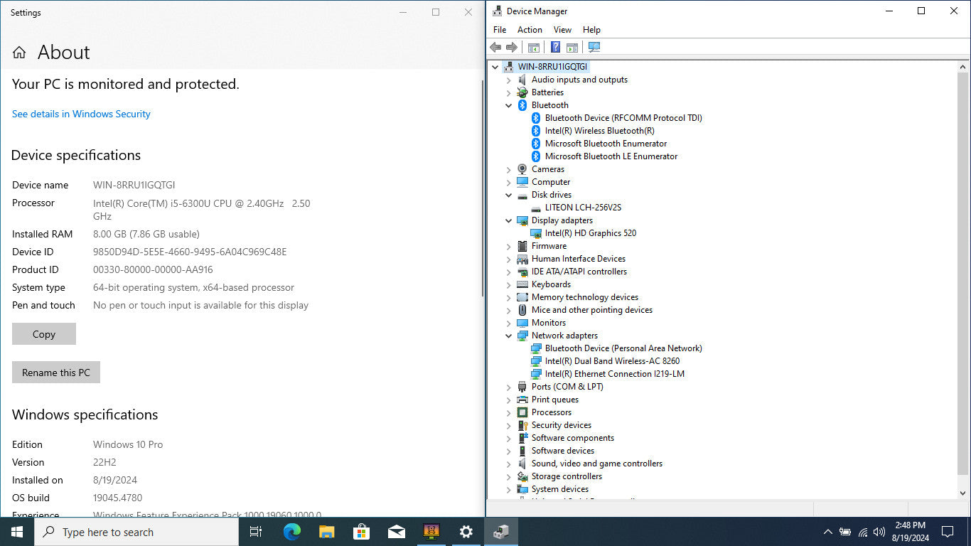 LENOVO THINKPAD X260 12" HD I5-6300U 256GB SSD 8GB W10P Backlit *READ*