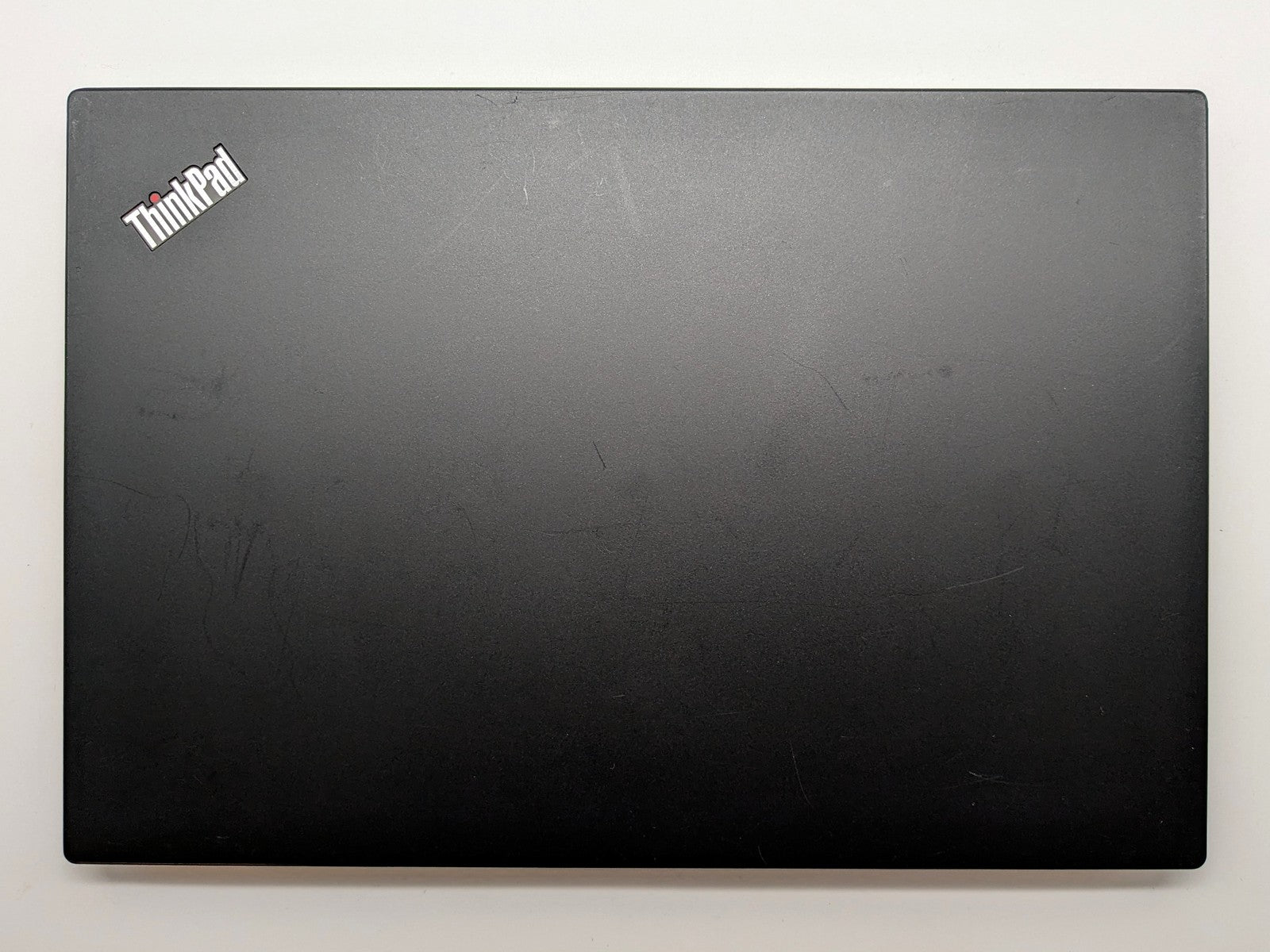 Cosmetic Defects: Interior: Display has visible scratches and keyboard imprinting. Touchpad coating has been peeled off, but touchpad is still functional. Several keys have heavy wear and damaged legends. Moderate wear and scuffs on palm rest and above keyboard. Exterior: Moderate to heavy scuffing, scratching, and patches of discoloration across all surfaces.