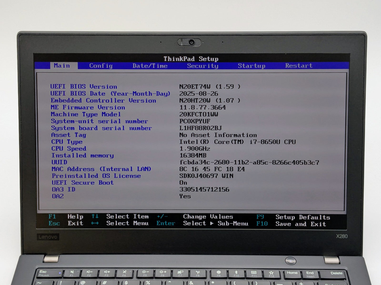 Lenovo ThinkPad X280 20KF 12" FHD Touch I7-8650U 256GB 16GB W11P FP Reader