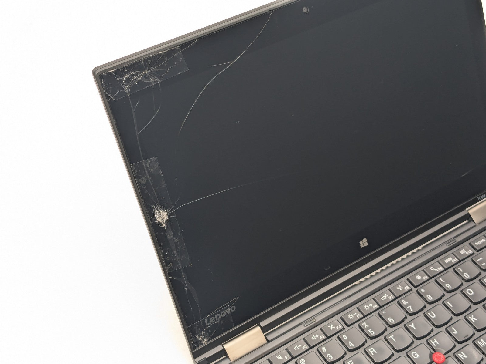 Cosmetic Defects: Interior: Screen is shattered and has many cracks, tape has been applied to certain areas. Missing one screw cover on bottom right corner of display bezel. Moderate to heavy wear on keyboard, palmrest, and touchpad. Exterior: Scuffs and scratches covering top and bottom of unit. Chips and cracks on sides of unit.