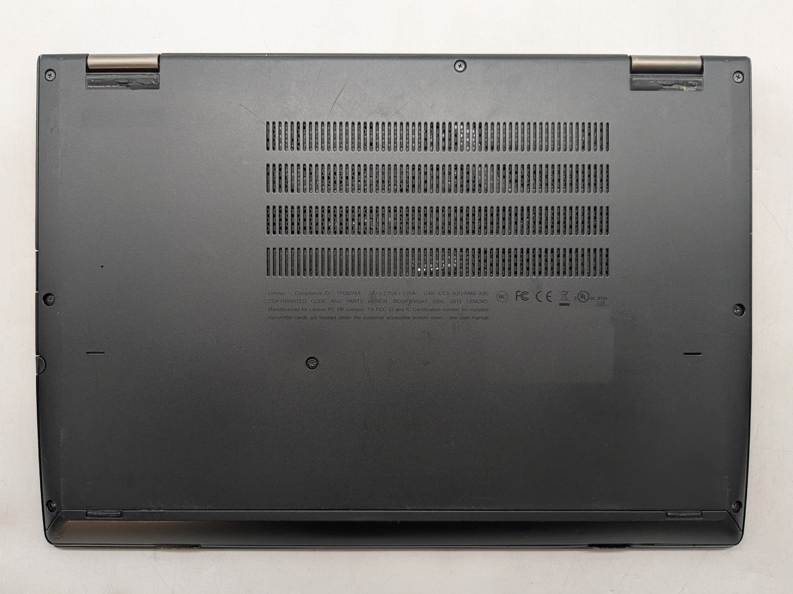 Cosmetic Defects: Interior: Display has visible scratches and keyboard imprinting. Heavy wear on palm rest, keyboard, touchpad, bezel, and around keyboard. Keyboard lattice does not sit flush with system. Wear on hinges. Exterior: Discoloration and scratches on lid and bottom cover, scuffed along edges of device, bottom rubber feet damaged.