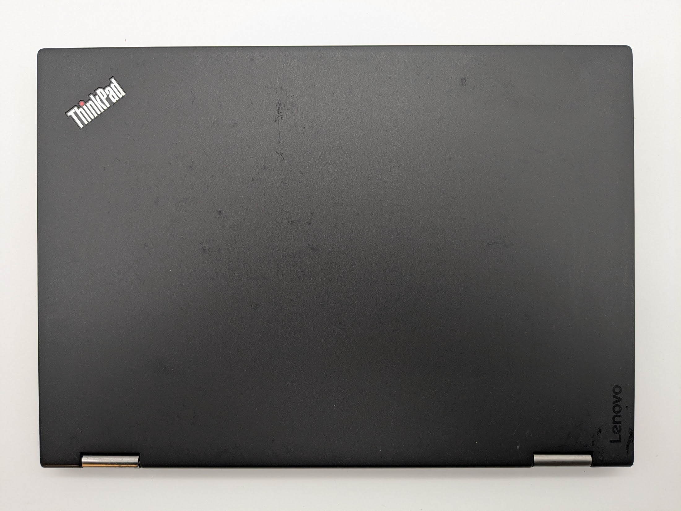 Cosmetic Defects: Interior: Display has visible scratches and keyboard imprinting. Moderate to heavy wear on keyboard, touchpad, and palmrest. Deep scrapes on bottom left corner of palmrest. Exterior: Several patches of heavy scuffing, discoloration, and moderate scratches on all surfaces. Small patches of chipped paint along edges of device.