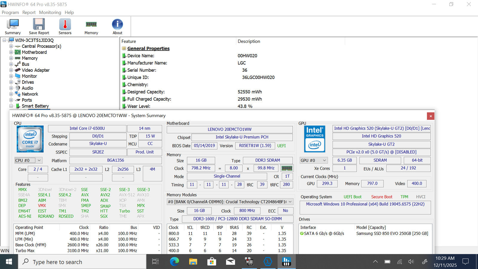 Battery Condition: 29,530/52,550 mWh 56.19%