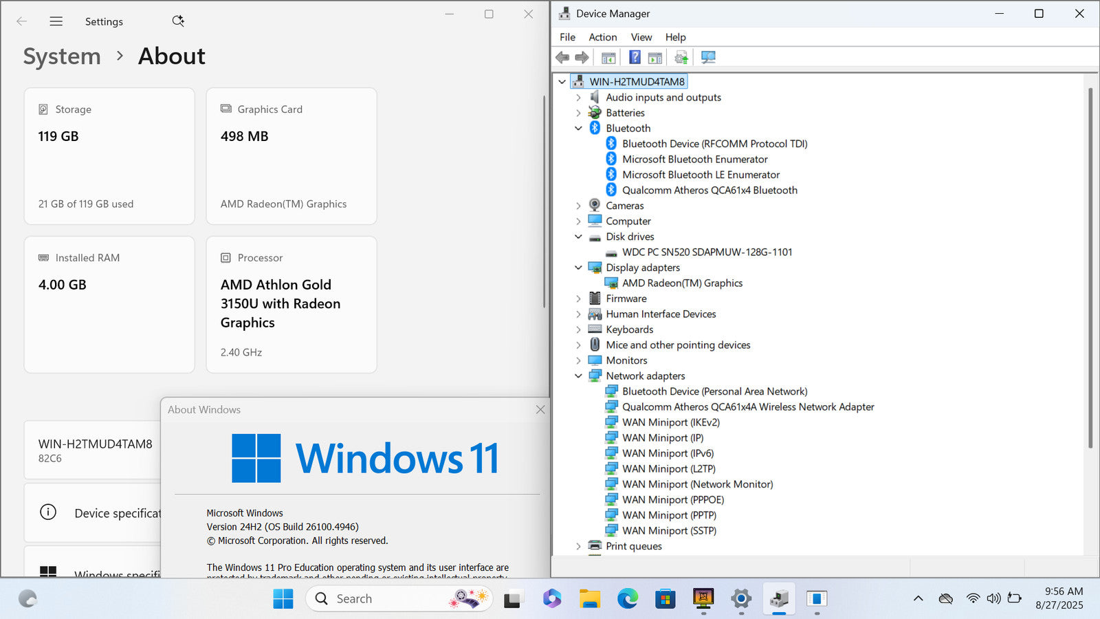 Lenovo V14-ADA 82-C6 14" FHD ATHLON GOLD 3150U 128GB SSD 4GB W11P *READ*