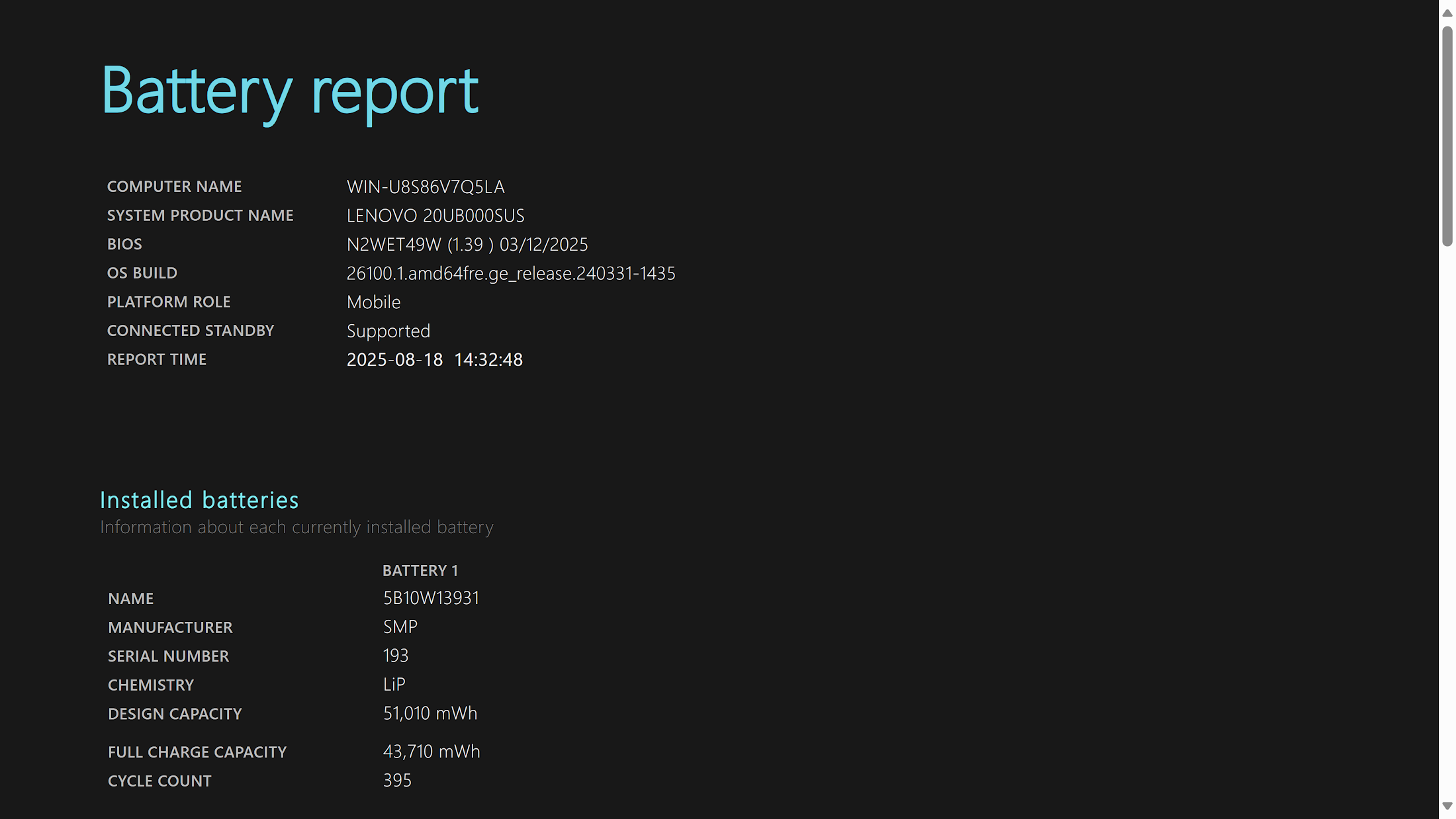 Battery Condition: 43,710/51,010 mWh 85.69%