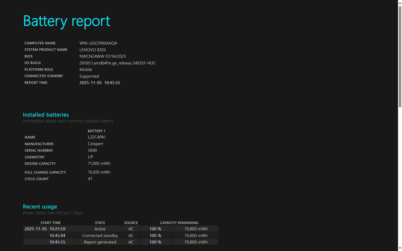 Battery Condition: 70,810/71,000 mWh 99.73%