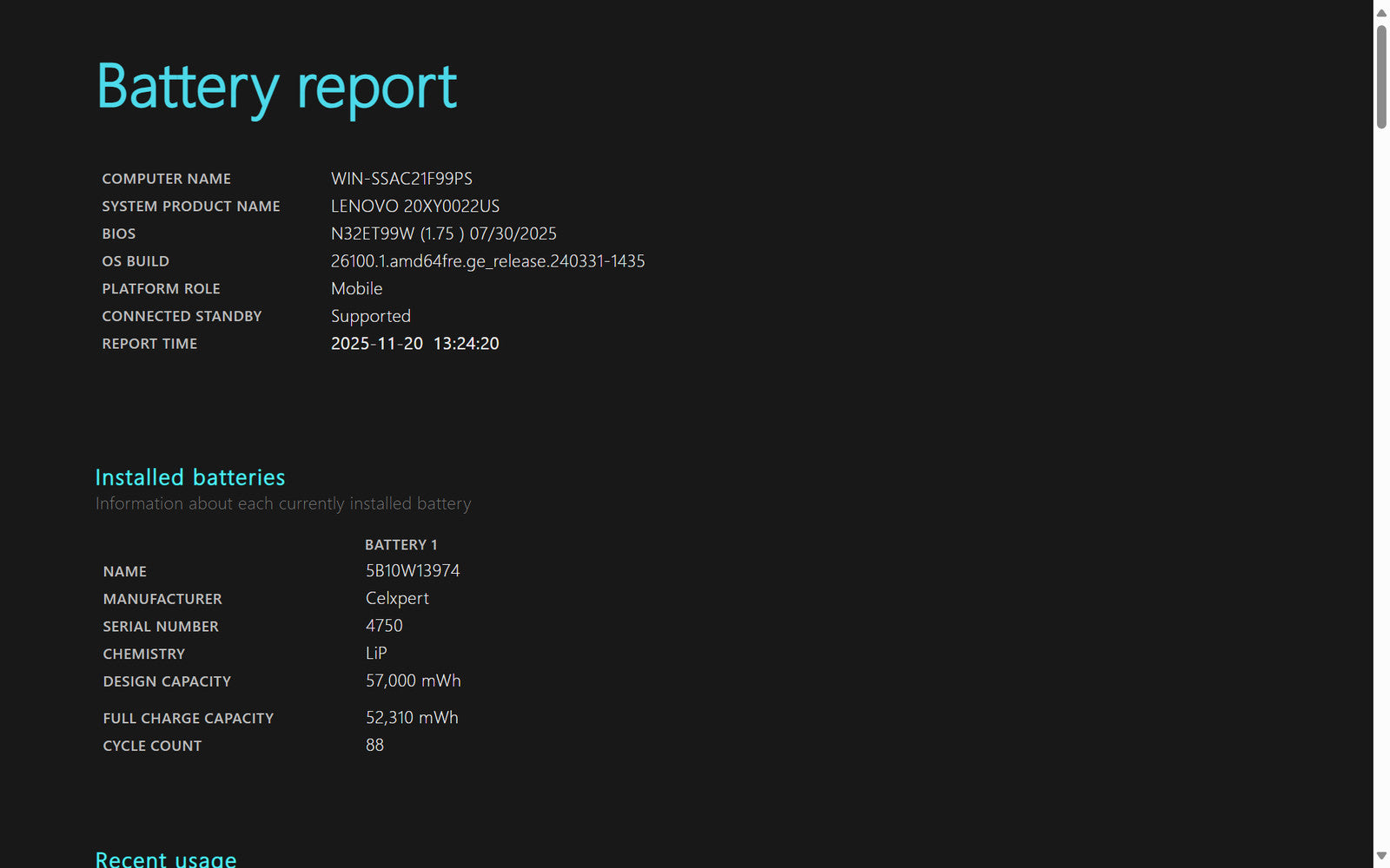 Battery Condition: 52,310/57,000 mWh 91.77%