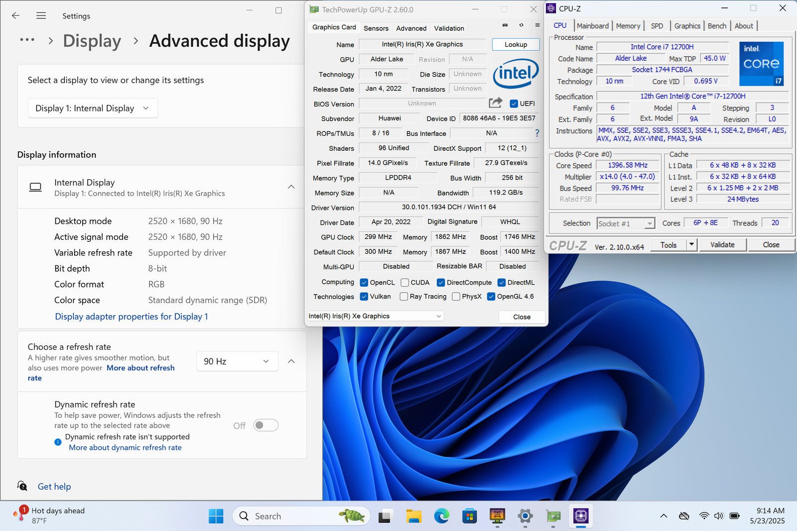 MateBook HKF-16 14" 2520 x 1680 Touch I7-12700H 1TB SSD 16GB W11 90Hz