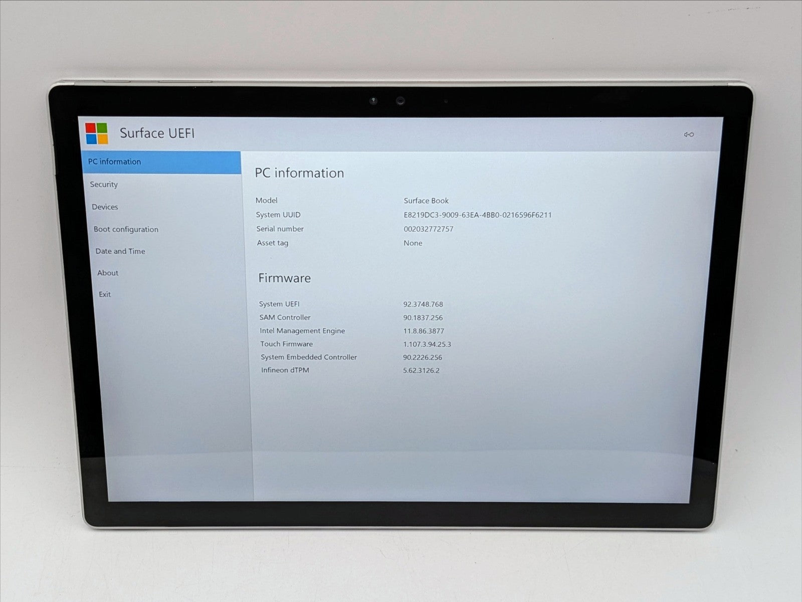 Microsoft Surface Book 13" 3000 x 2000 Touch I7-6600U 512GB 16GB W10P IRCam