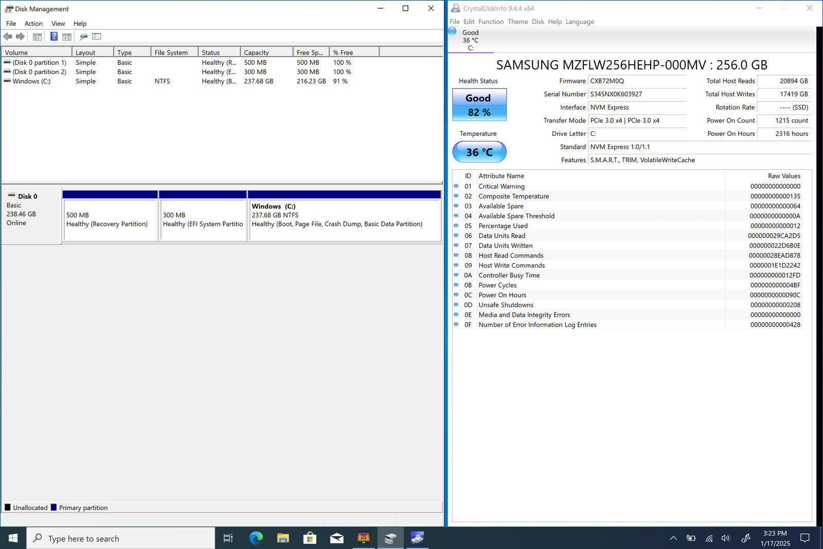 Battery Condition: Battery 1: 16,970/18,000mWh 94.28% | Battery 2: 42,970/51,130mWh 84.04%
