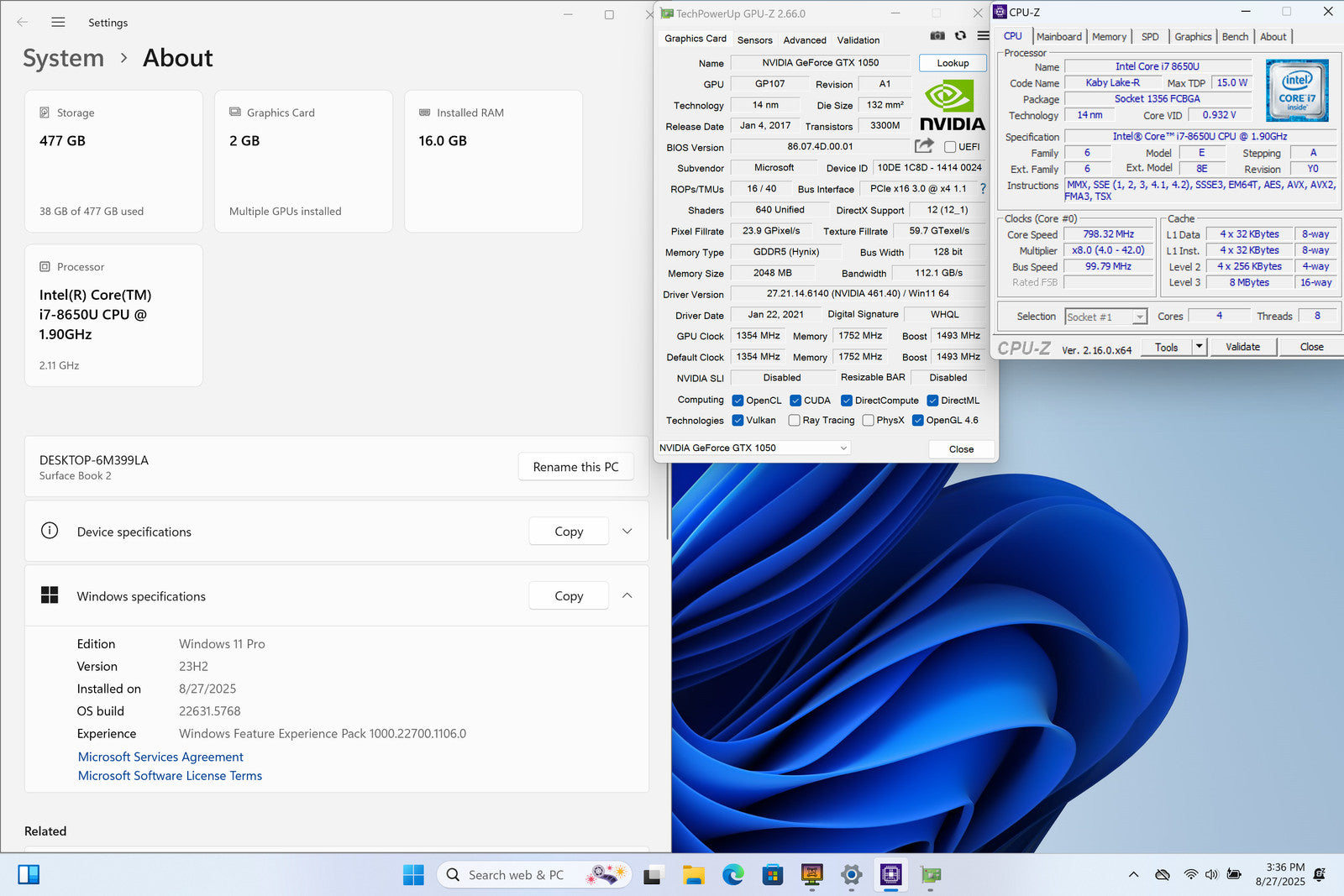 Microsoft Surface Book 2 13" Touch I7-8650U 512GB SSD 16GB W11P GTX 1050 *READ*