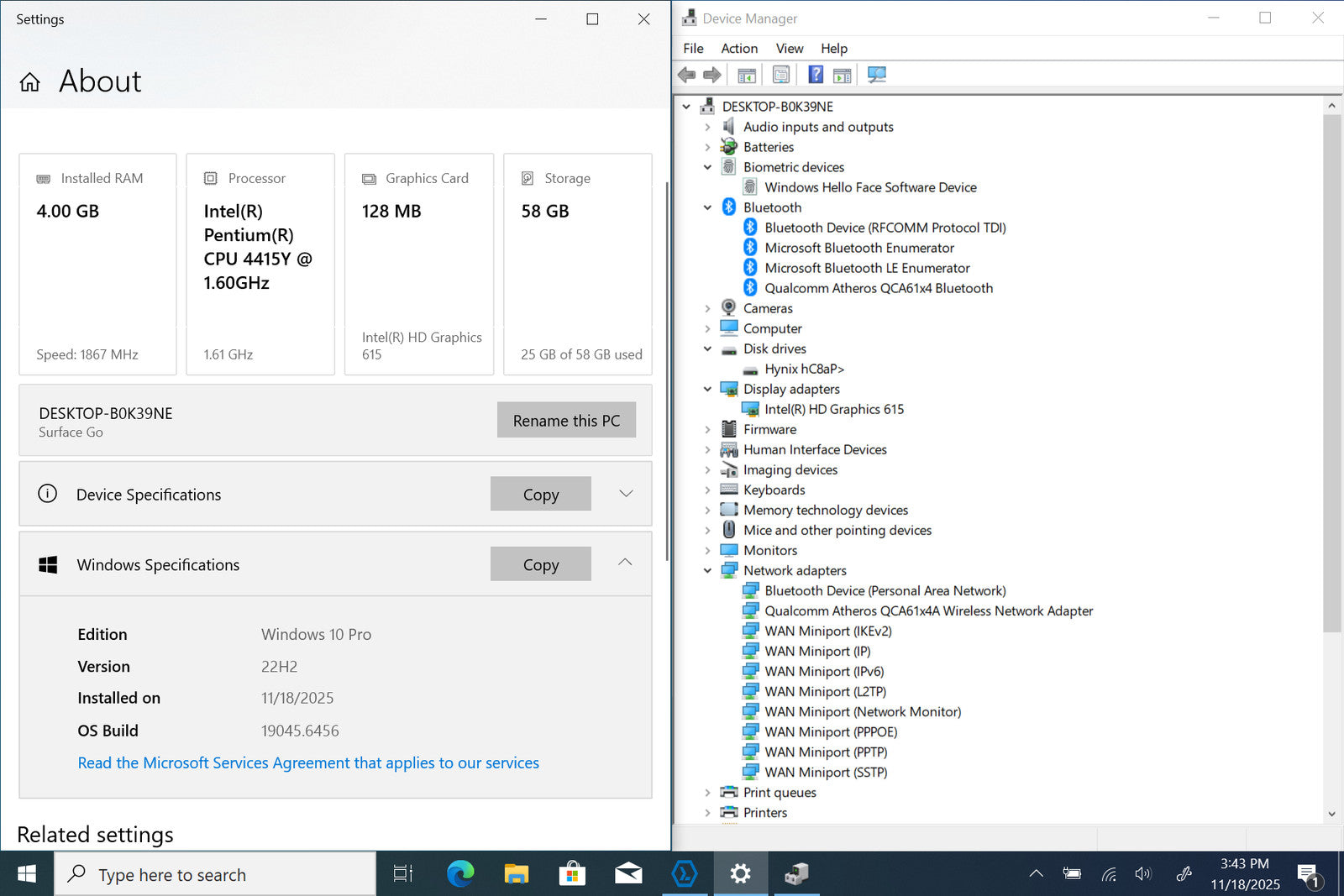 Microsoft Surface Go 2-in-1 10" 1800 x 1200 Touch PENTIUM 4415Y 4GB W10P IRCam