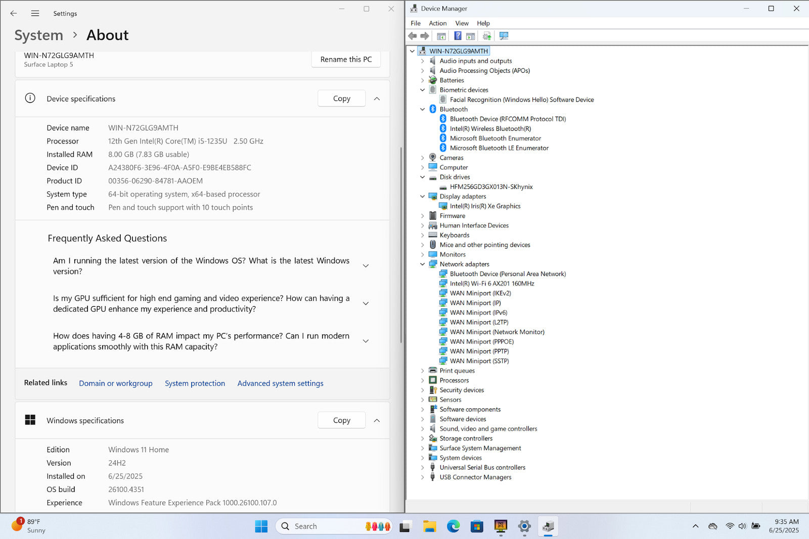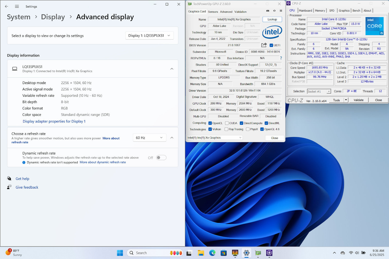 Microsoft Surface Laptop 5 13" 2256 x 1504 Touch I5-1235U 256GB SSD 8GB W11 BT
