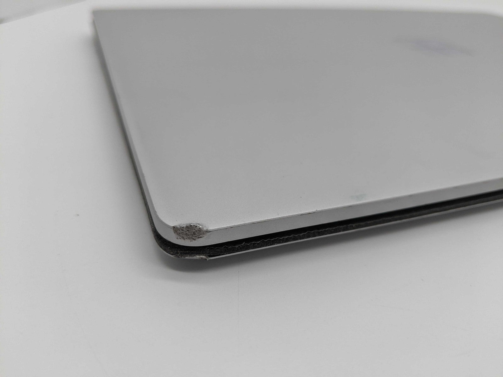 Cosmetic Defects: Top: Scratches and ding Bottom: Mark, scratches, missing 3 rubber feet Side: One corner dented. One deep scratch Inside: Dirty fabric and marks on the keyboard.