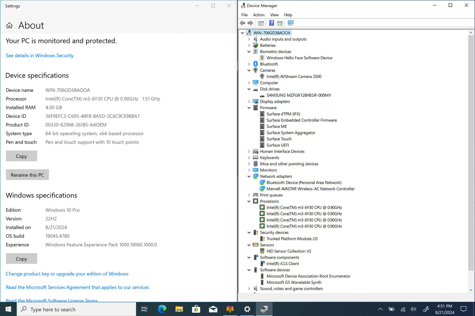 MICROSOFT SURFACE PRO 4 12.3" 2736 x 1824 Touch M3-6Y30 128GB SSD 4GB W10P