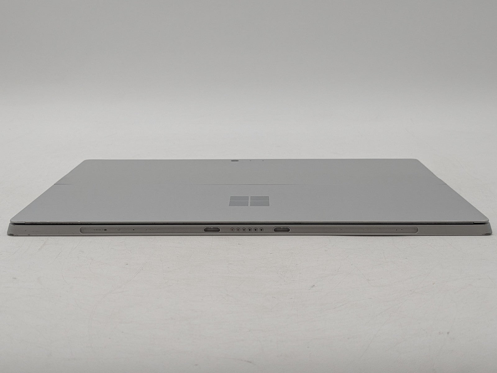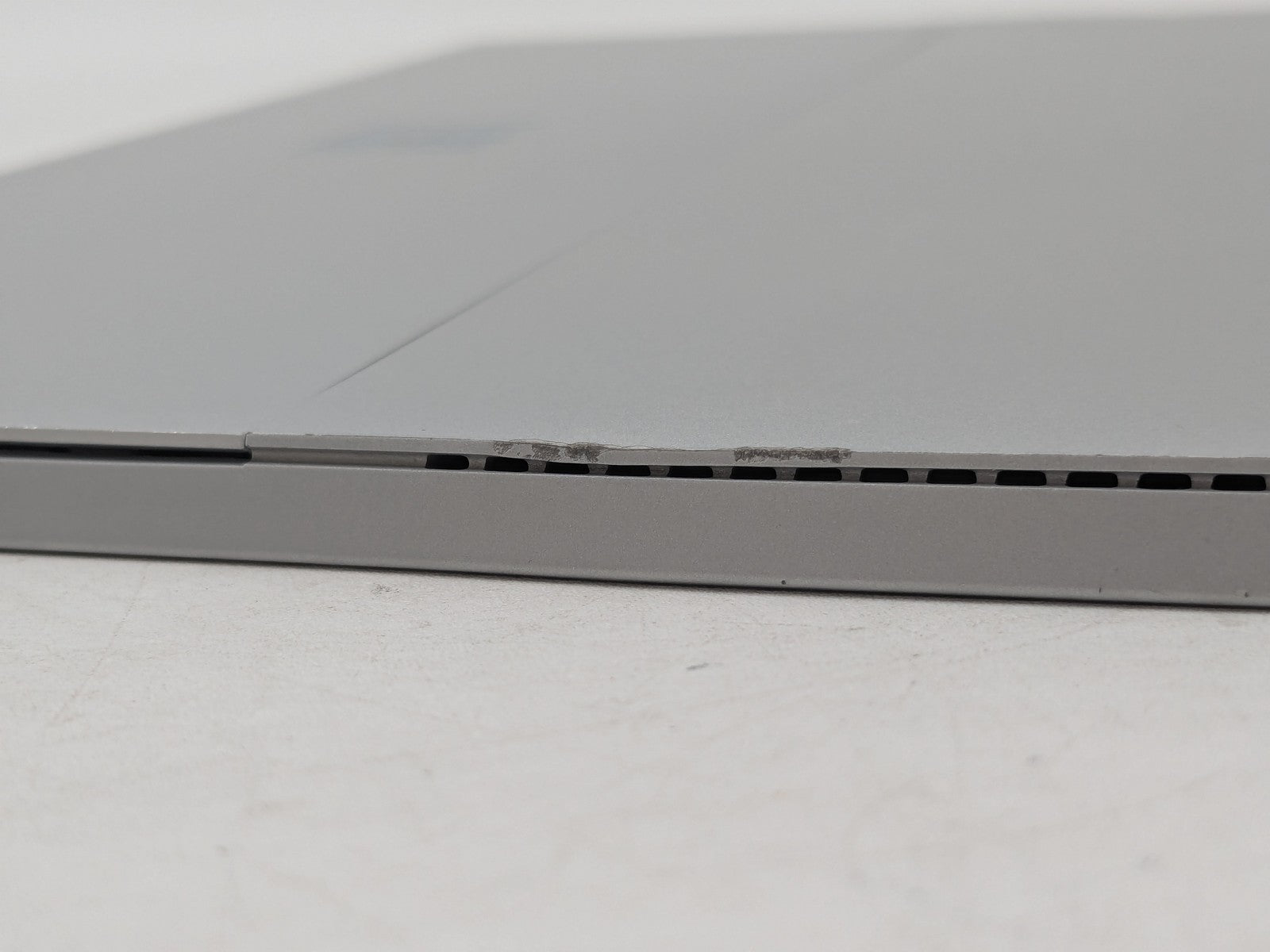 Cosmetic Defects: Display has small scratches and bright spot near bottom-right. Sides have chipped paint and wear. Back cover and kickstand have visibel scratches, chips in paint, and scuffs. Keyboard port has chipped paint.\