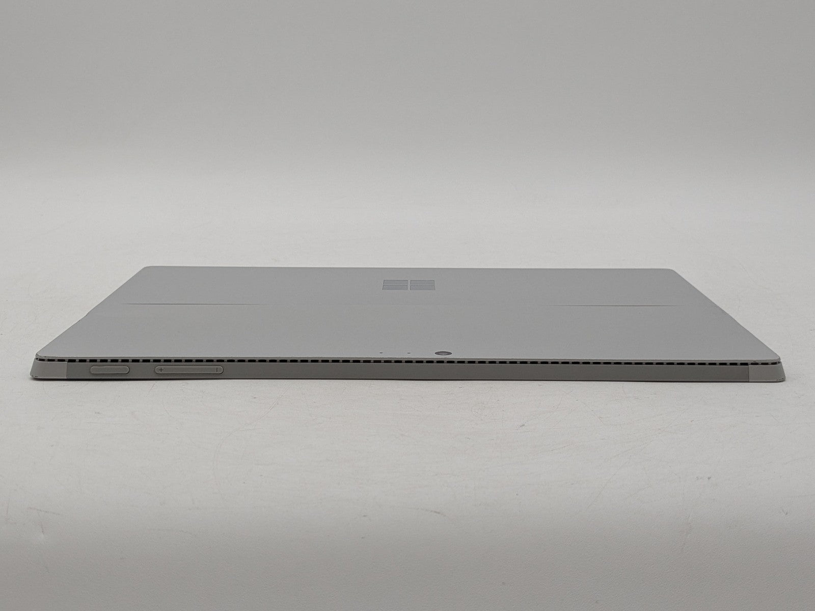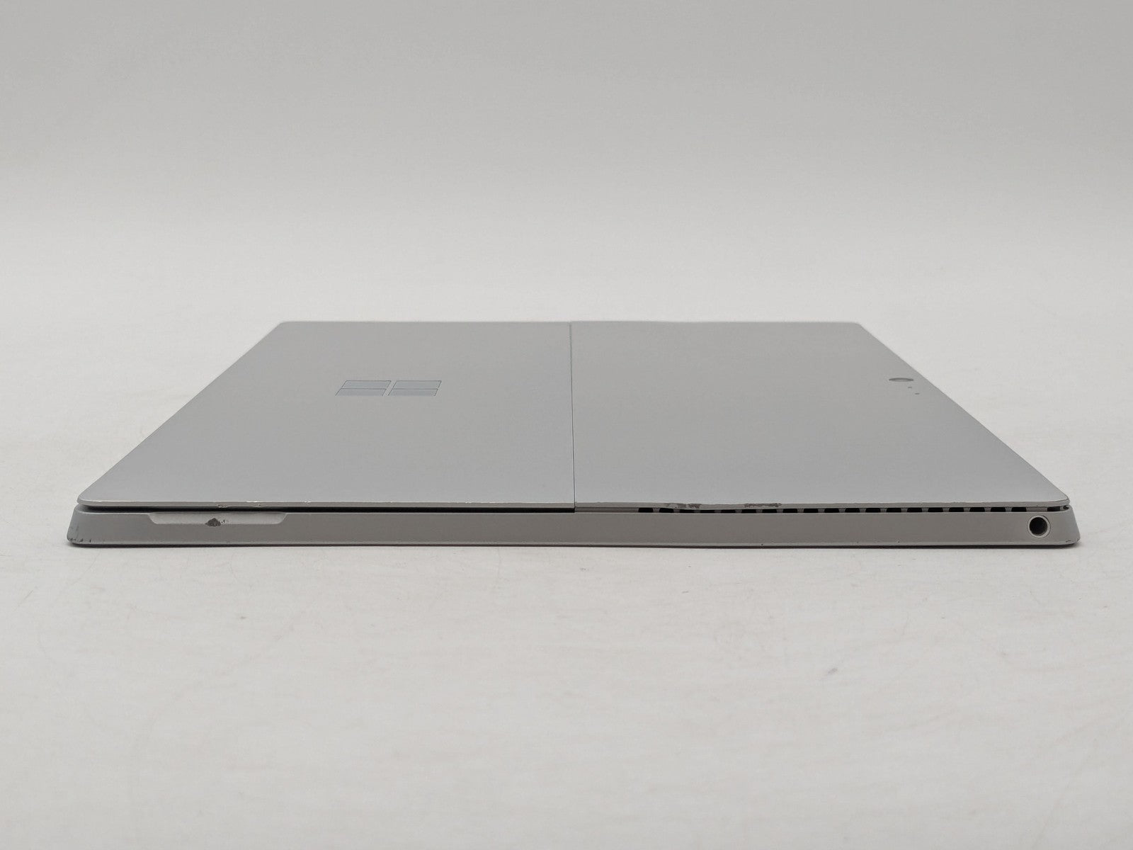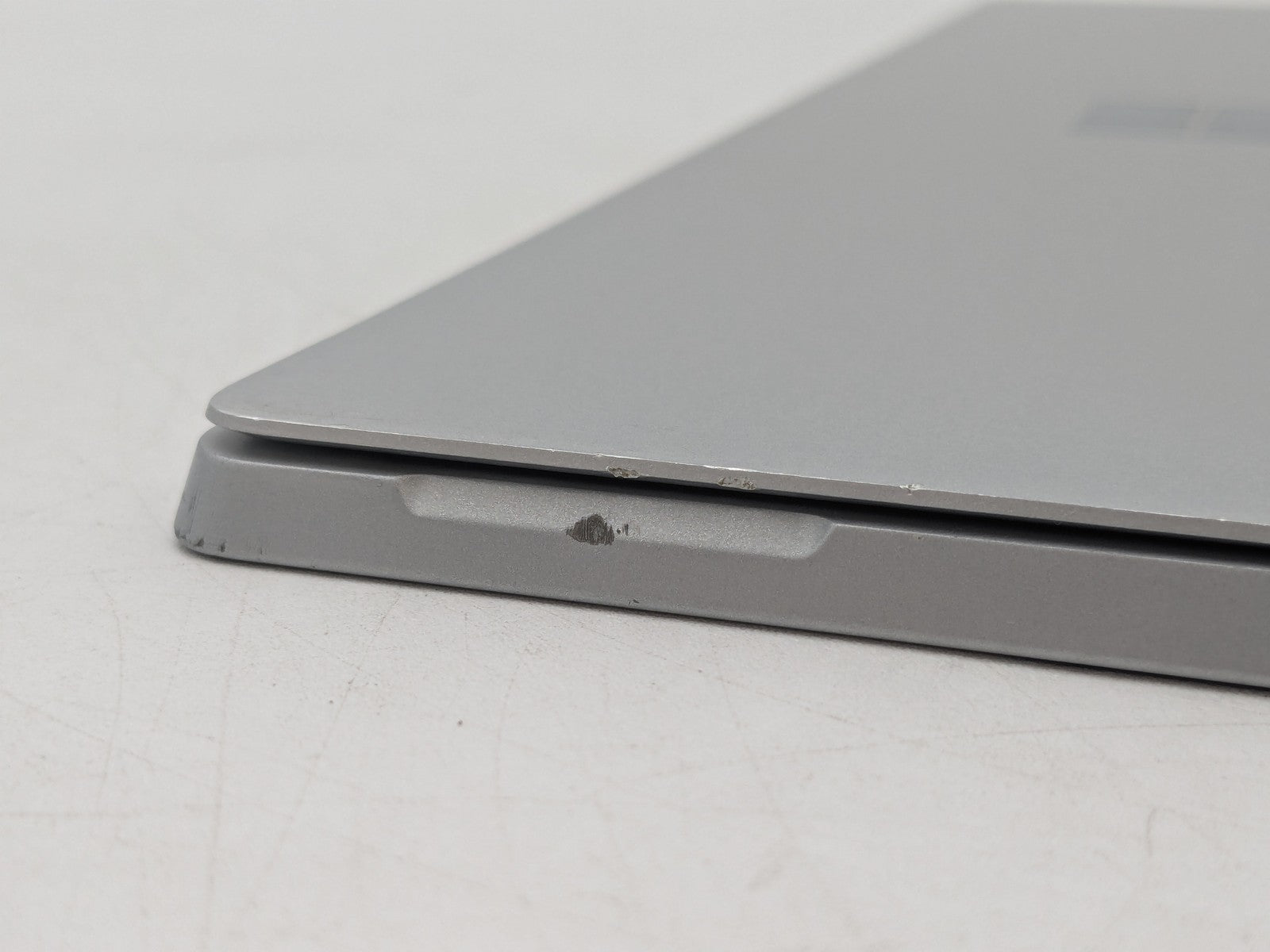 Cosmetic Defects: Display has small scratches and bright spot near bottom-right. Sides have chipped paint and wear. Back cover and kickstand have visibel scratches, chips in paint, and scuffs. Keyboard port has chipped paint.\
