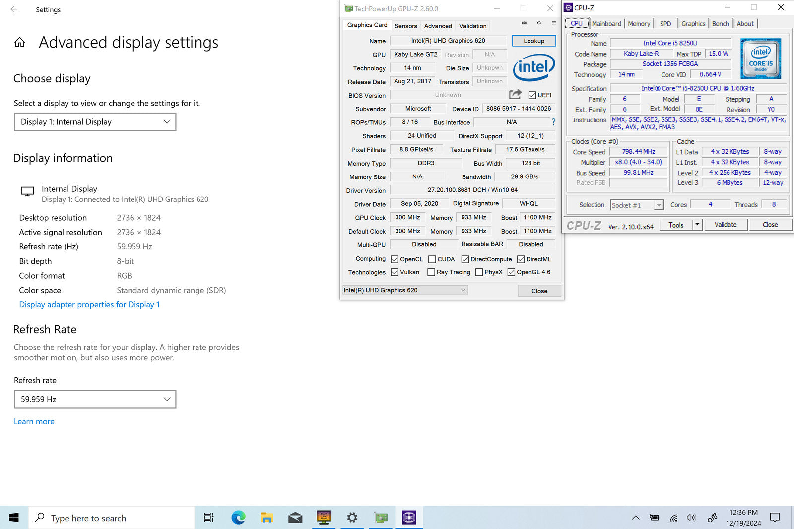MICROSOFT SURFACE PRO 6 12" 2736 x 1824 Touch I5-8250U 256GB SSD 8GB W10 Backlit