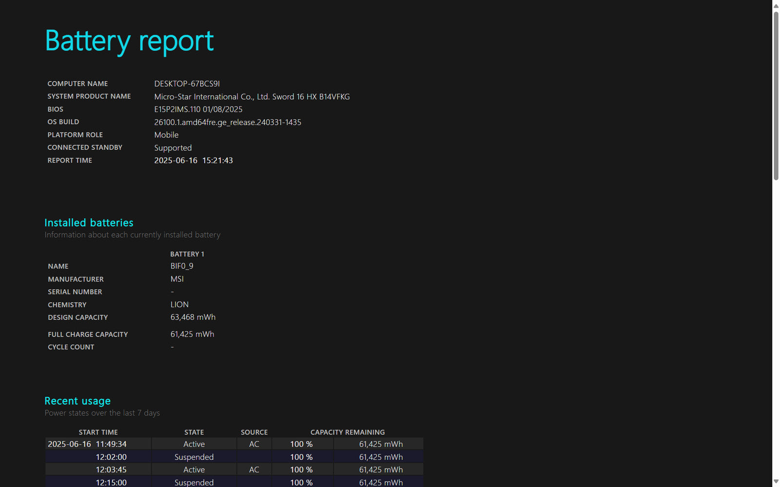 Battery Condition: 60,573/63,468 mWh 95.44%