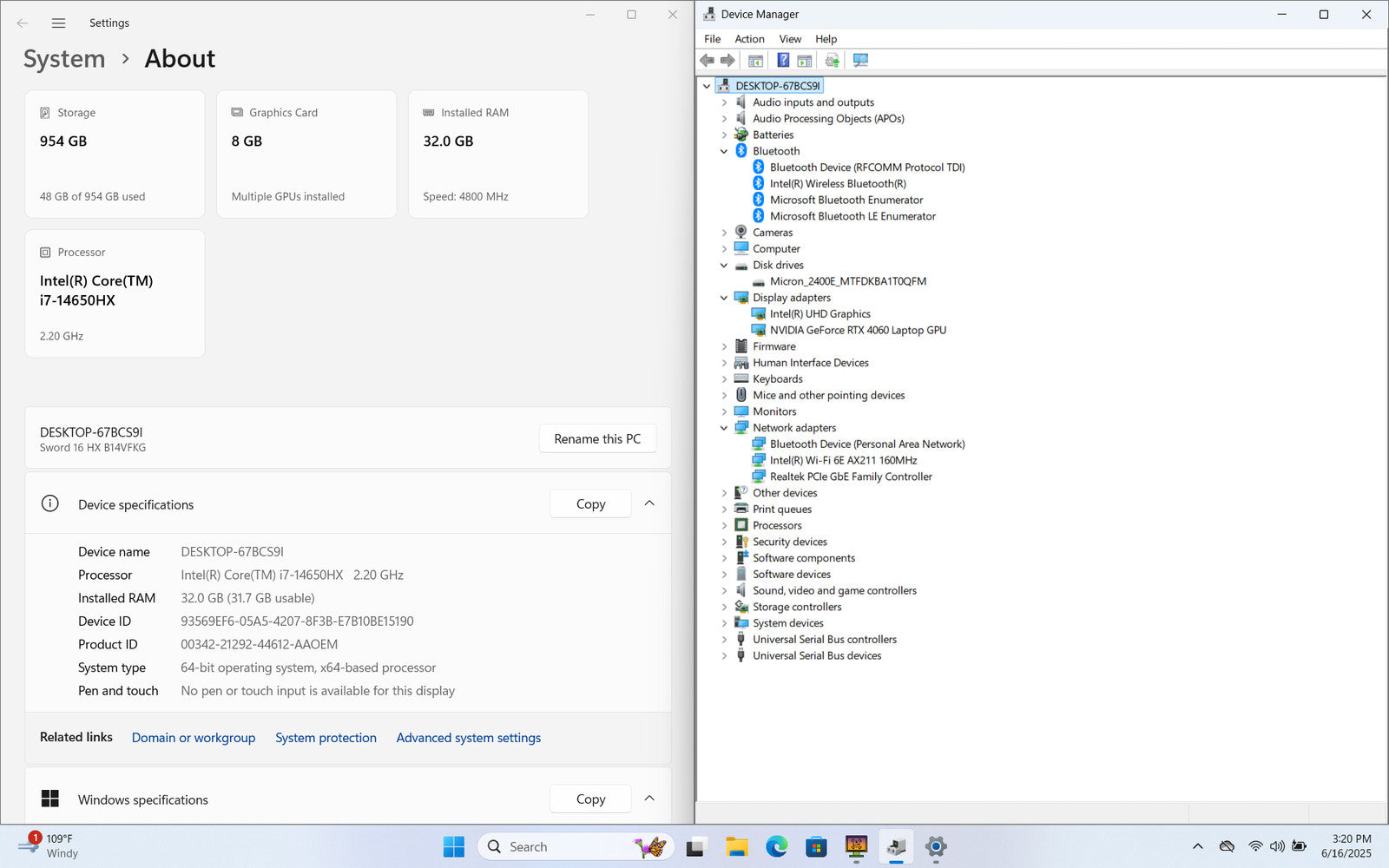 MSI SWORD 16 HX 16" FHD+ I7-14650HX 1TB 32GB W11 RTX 4060 RGB 144Hz Warranty