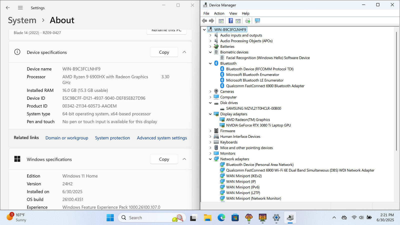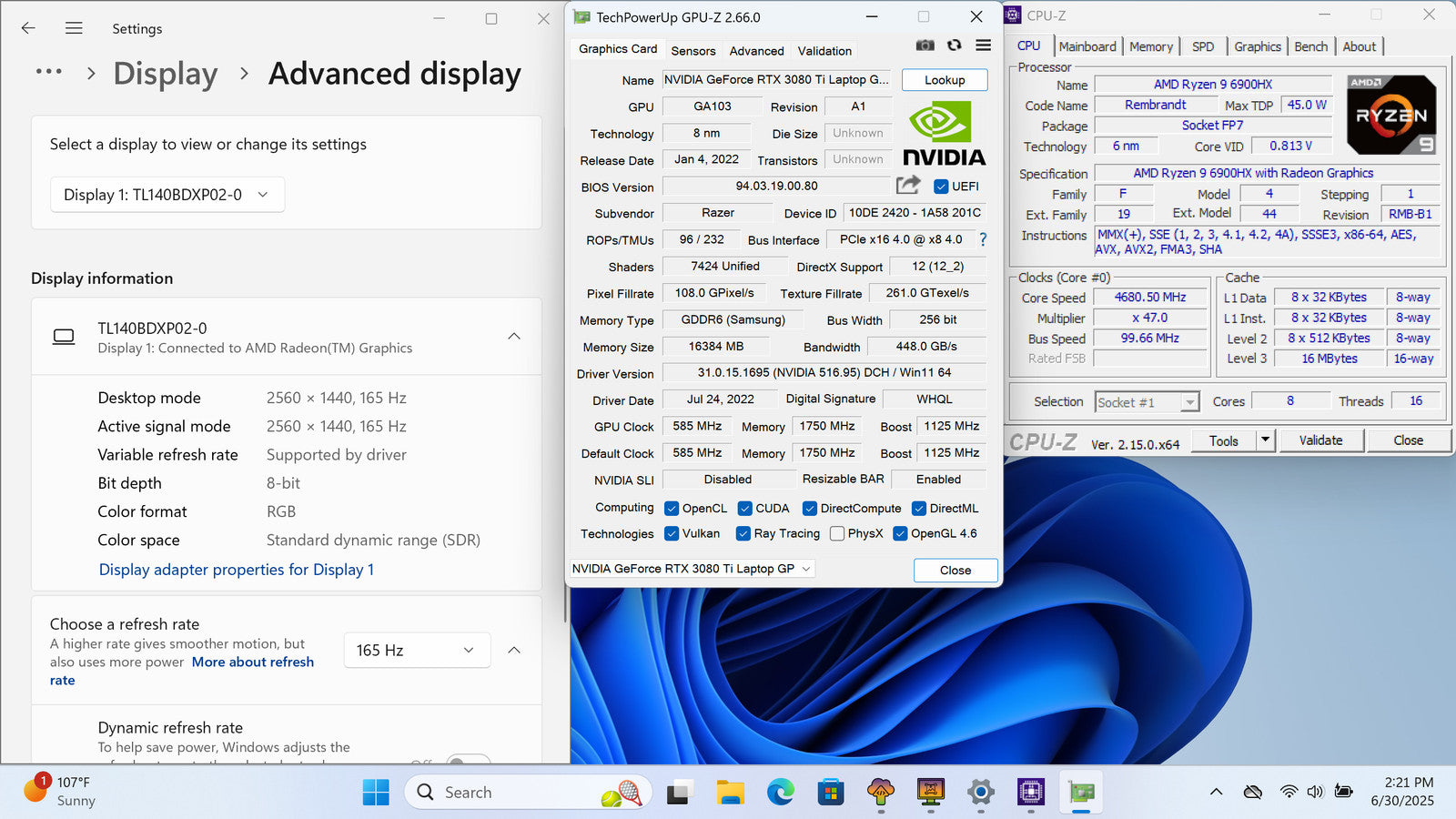 Razer Blade 14 (2022) 14" QHD RYZEN 9 6900HX 1TB 16GB W11 RTX 3080 Ti RGB 165Hz