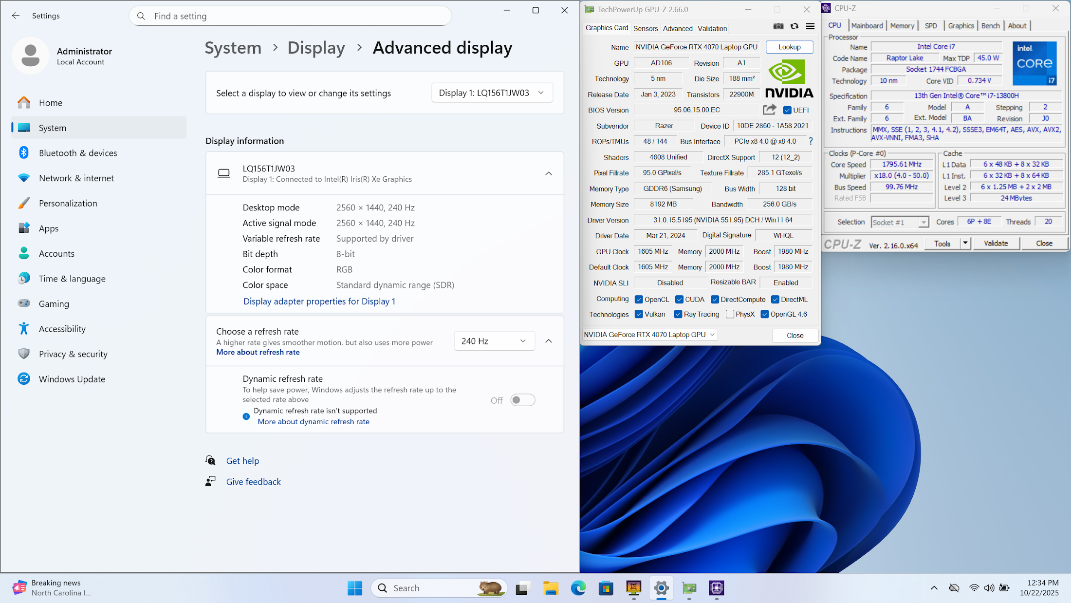 Razer Blade RZ09-0485Z 15" QHD I7-13800H 2TB 32GB W11 RTX 4070 GPU RGB 240Hz