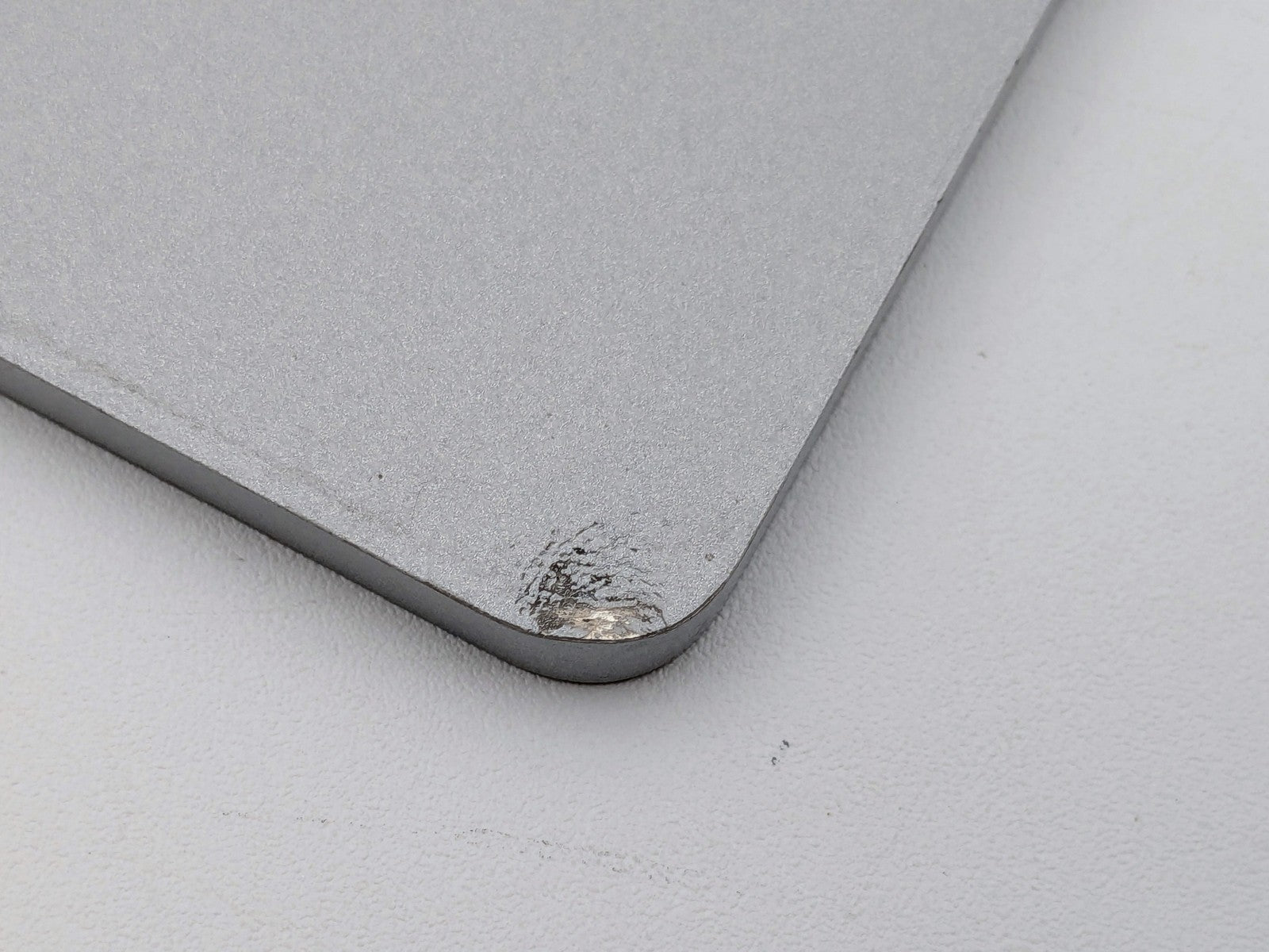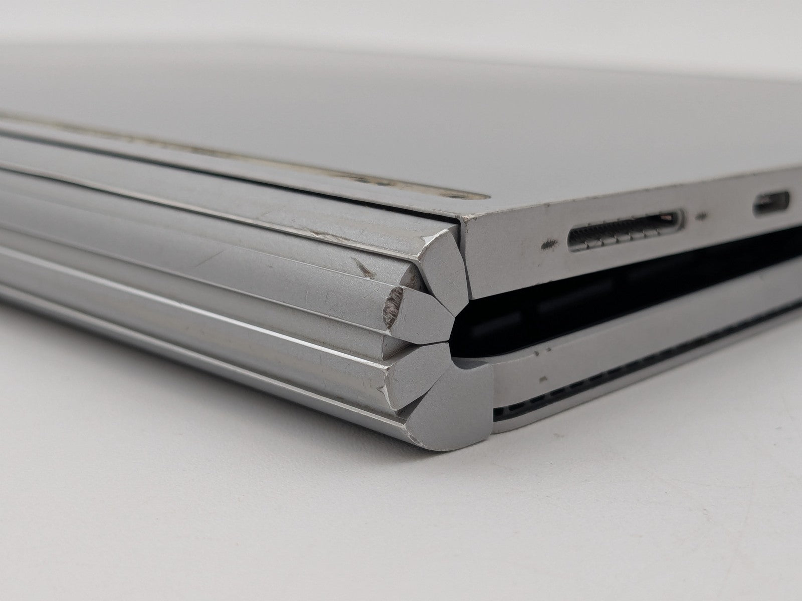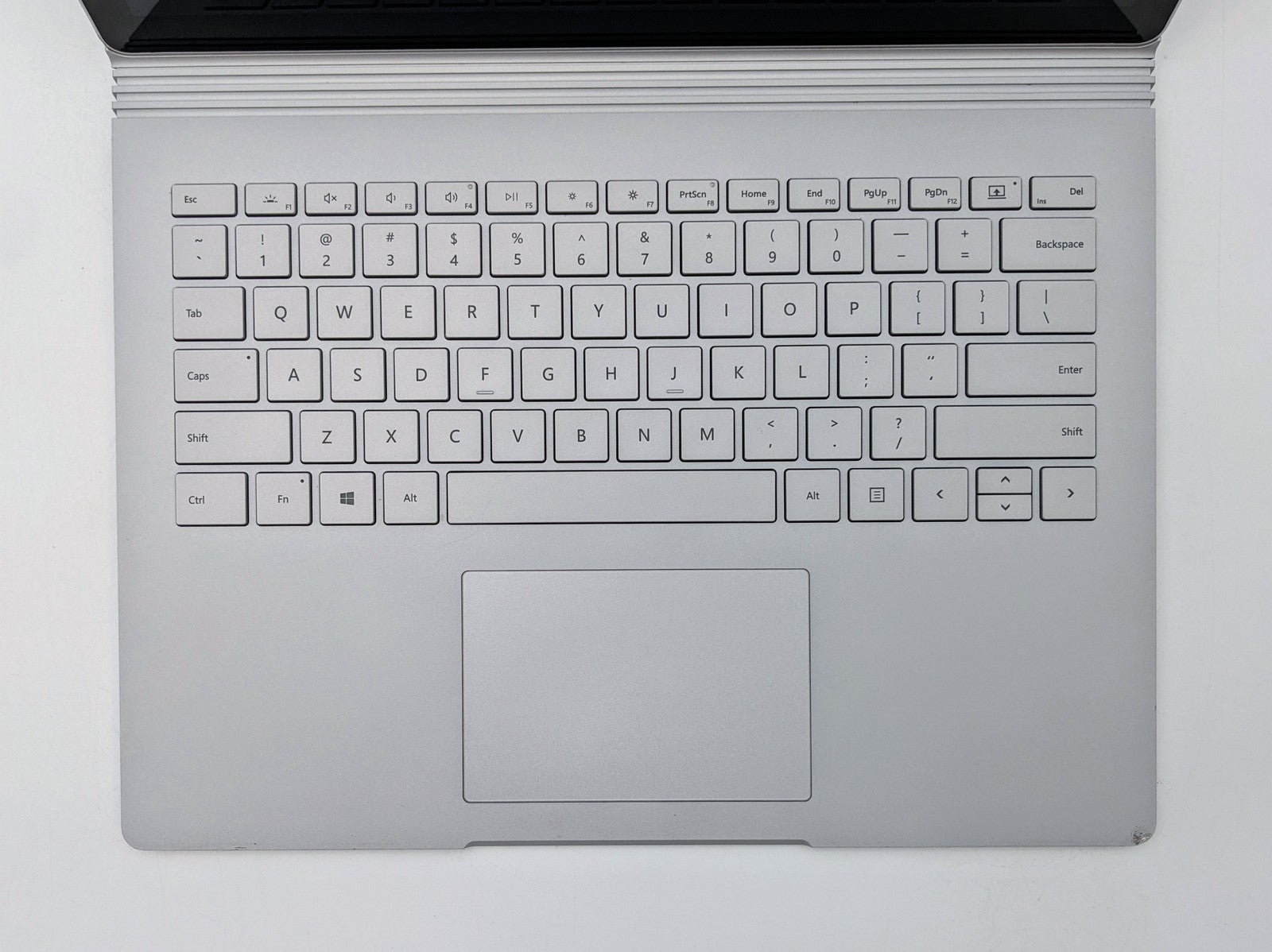 Cosmetic Defects: Interior: Display has visible scratches and light keyboard imprinting. Scratches around bezel, especially near camera. Light wear on keyboard and touchpad. Small dent on bottom right corner. Exterior: Visible wear and scratches on lid, scuffed/chipped in the edges, dented on corner. Visible wear and scratches on bottom cover. Missing bottom rubber feet. Motherboard S/N does not match bottom cover service tag.