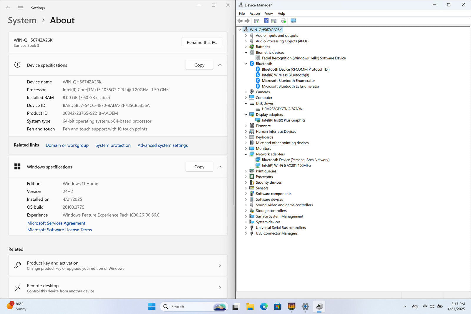 Surface Book 3 13" 3K Touch I5-1035G7 256GB SSD 8GB W11 Webcam Backlit IRCam