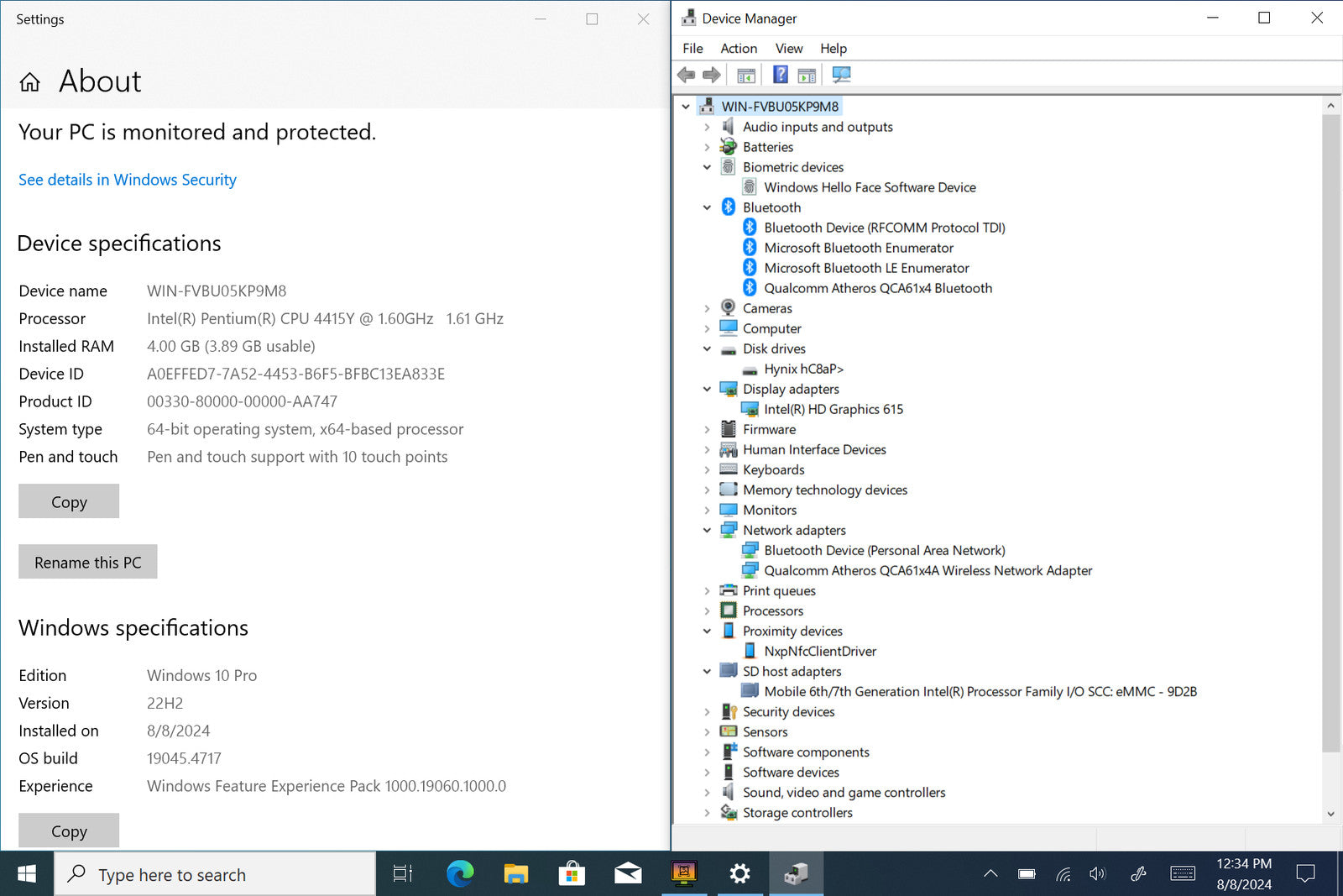 Surface Go 10.6 1800 x 1200 Touch PENTIUM 4415Y 64GB SSD 4GB W10P IRCam