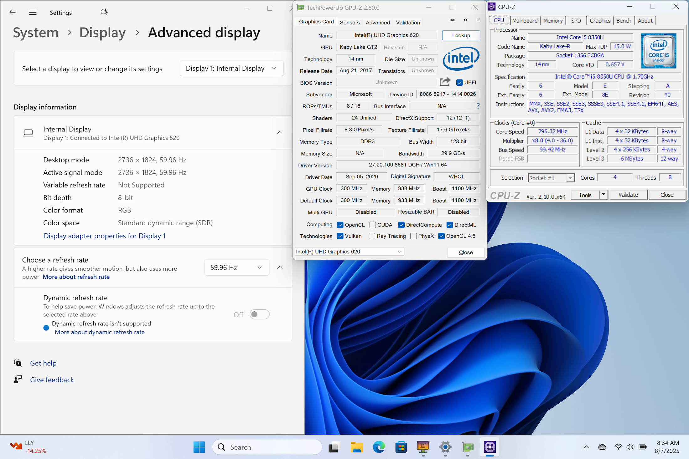 SURFACE PRO 6 2-in-1 12" 2736 x 1824 Touch I5-8350U 128GB SSD 8GB W11P IRCam