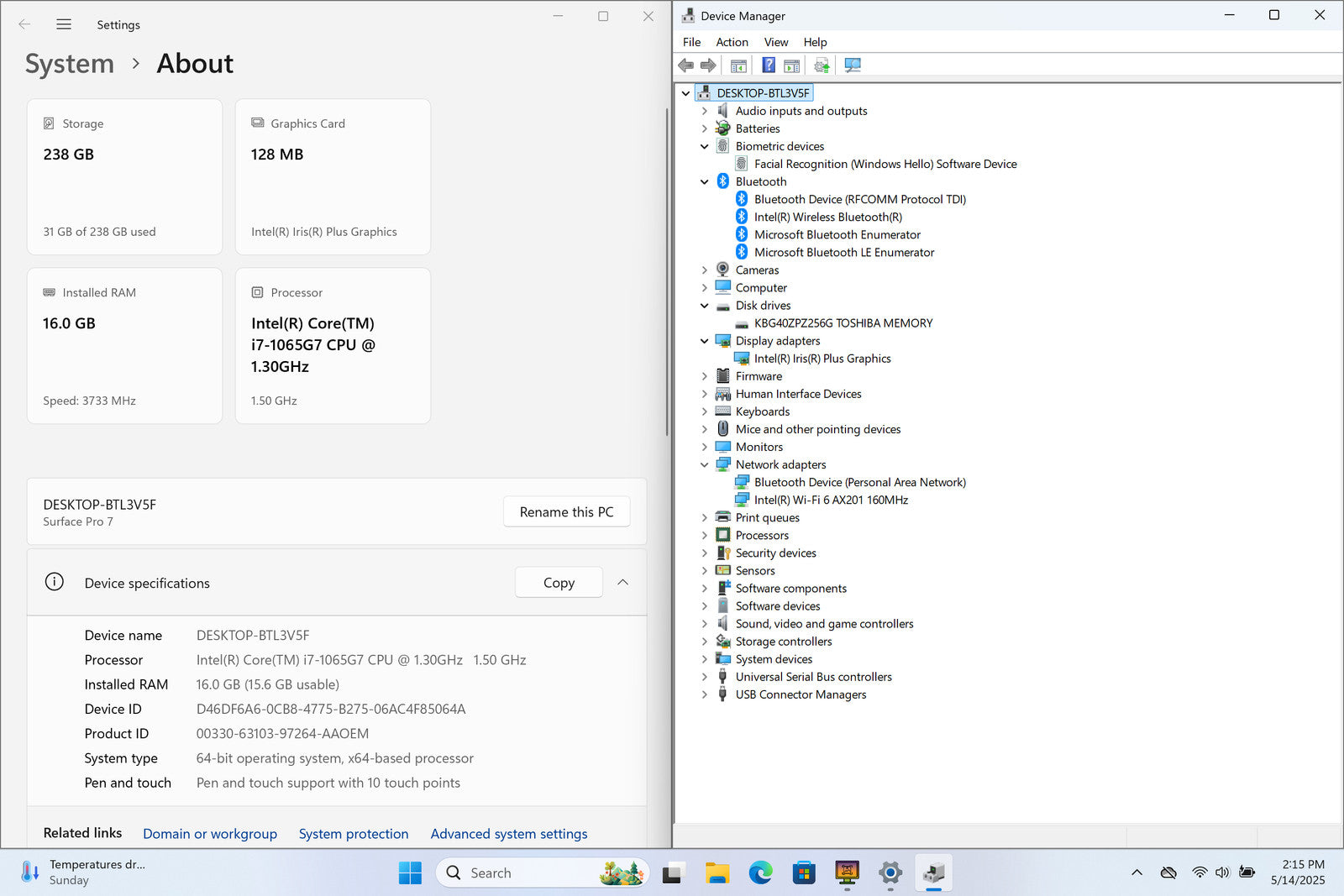 SURFACE PRO 7 12" 2736 x 1824 Touch I7-1065G7 256GB 16GB W11P Backlit IRCam