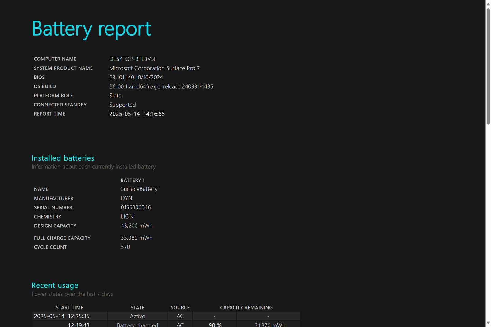 Battery Condition: 35,380/43,200 mWh 81.90%