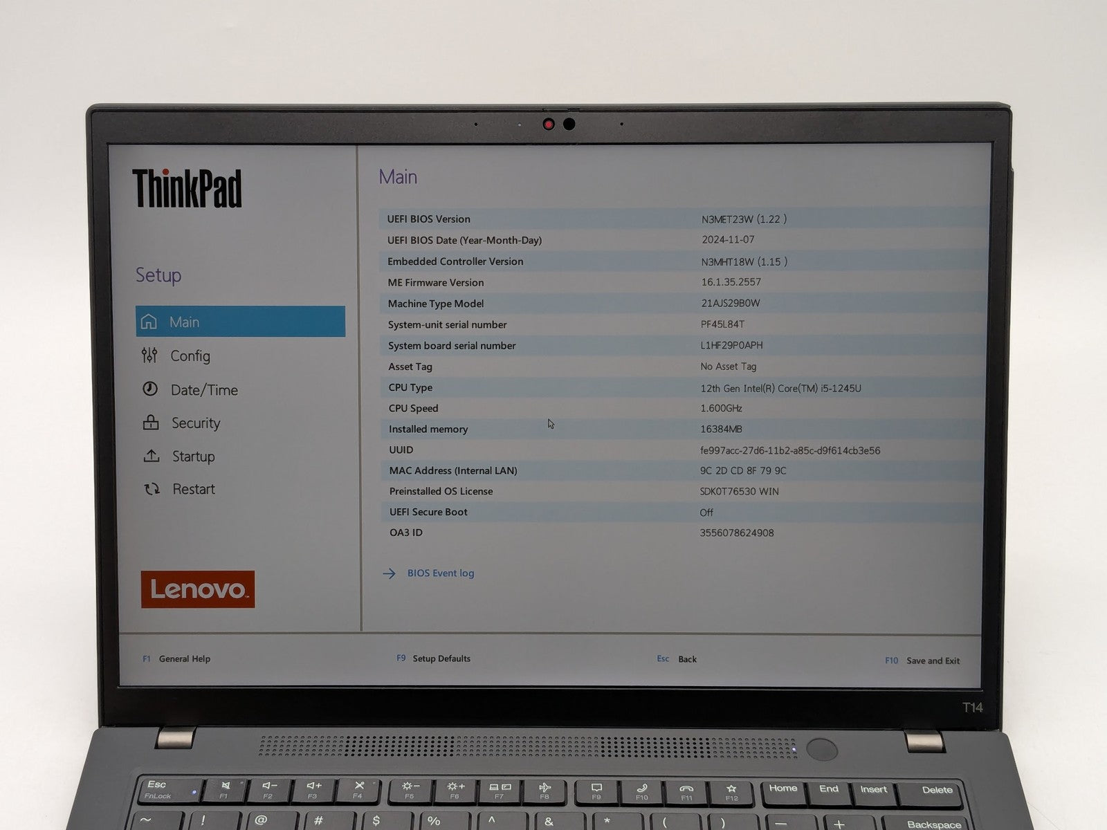 ThinkPad T14 Gen 3 14" FHD+ I5-1245U 256GB 16GB W11P Backlit FP Reader Warranty