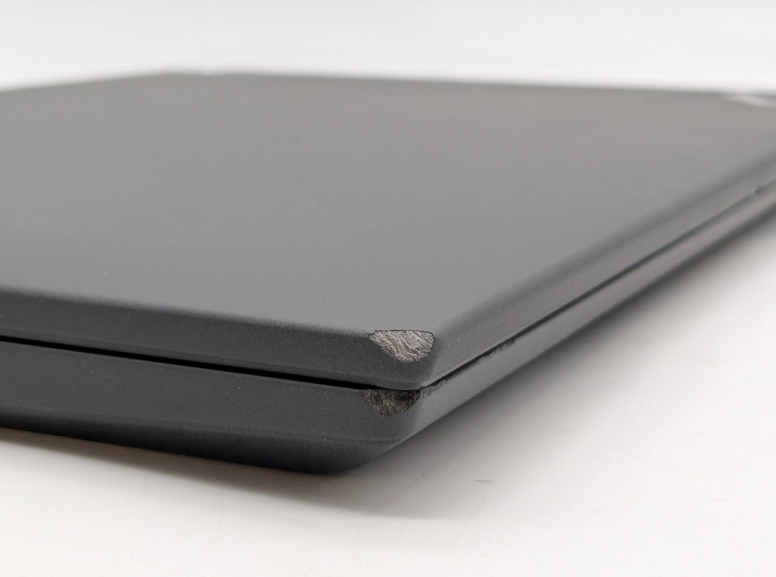 Cosmetic Defects: Interior: Marks on display, invisible during normal use. Exterior: Front corners have scrapes, dents, and right side has missing plastic. Top cover has small visible scratches.