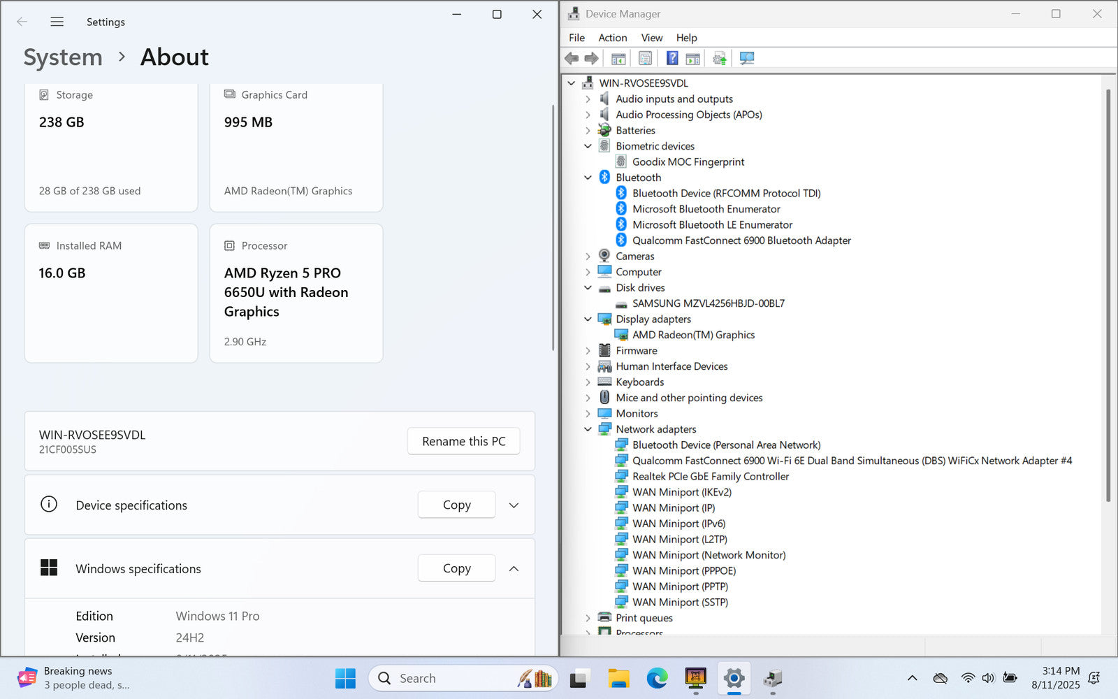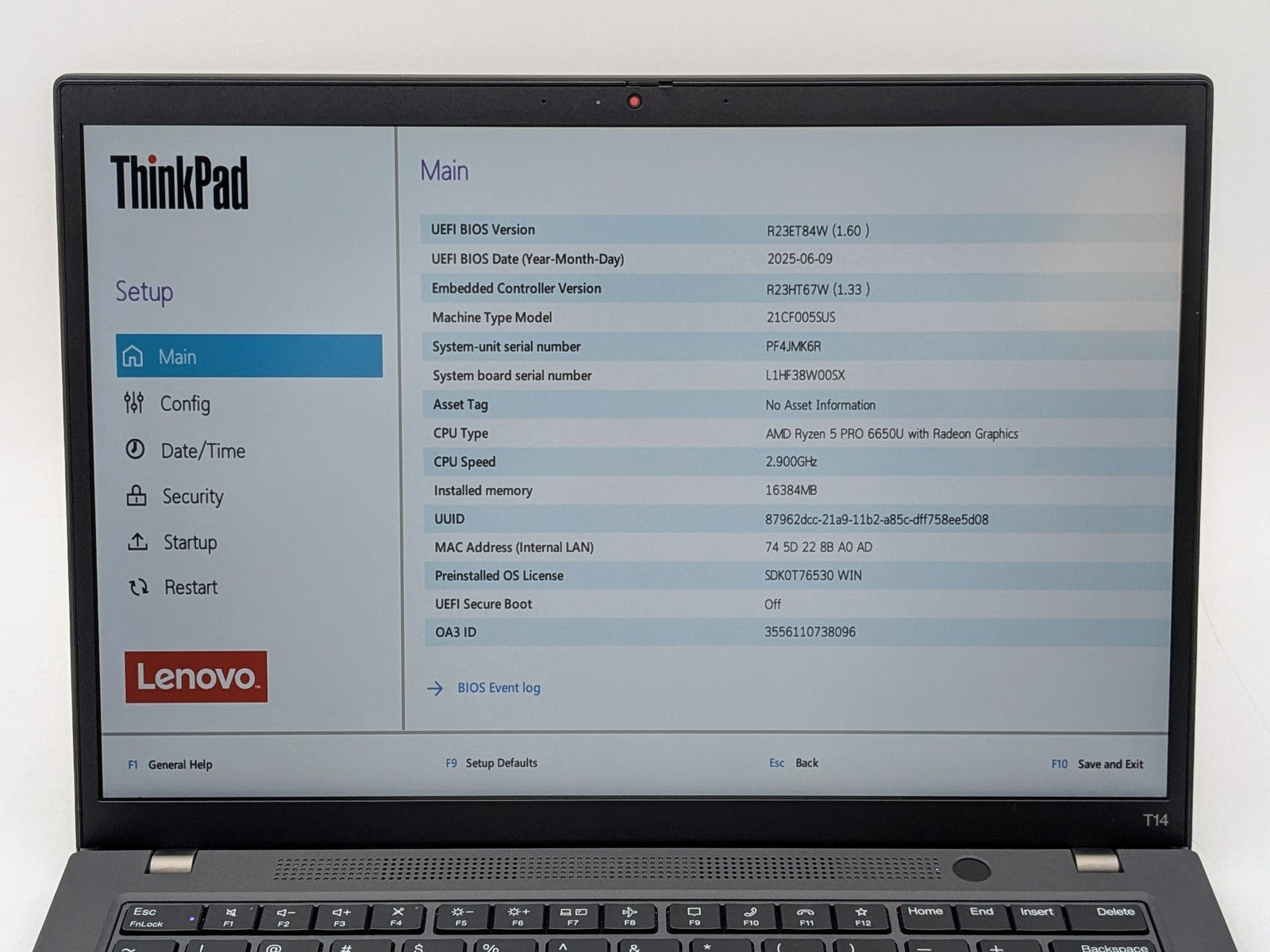 ThinkPad T14 Gen 3 14" FHD+ RYZEN 5 PRO 6650U 256GB 16GB W11P Backlit FPR WTY