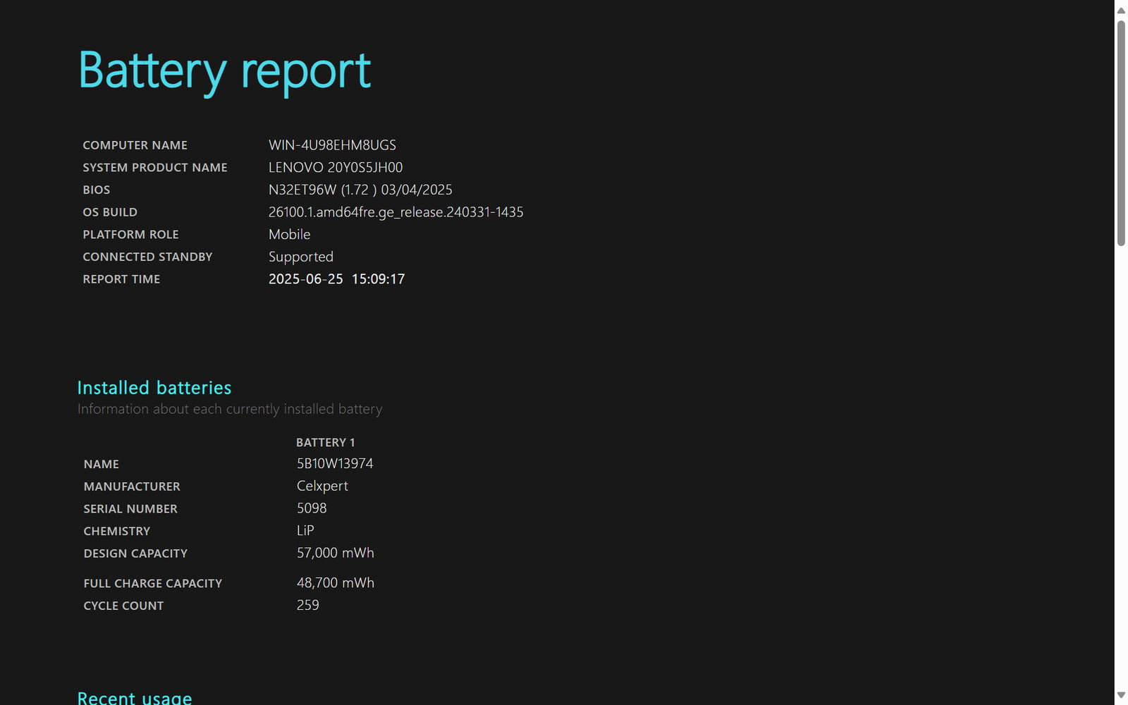Battery Condition: 48,700/57,000 mWh 85.44%