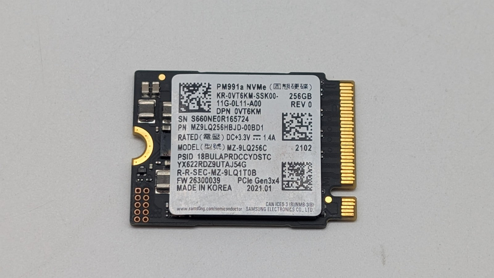 Samsung 256GB NVMe M.2 PCle SSD Gen 3x4 PM991a Dell P/N: VT6KM