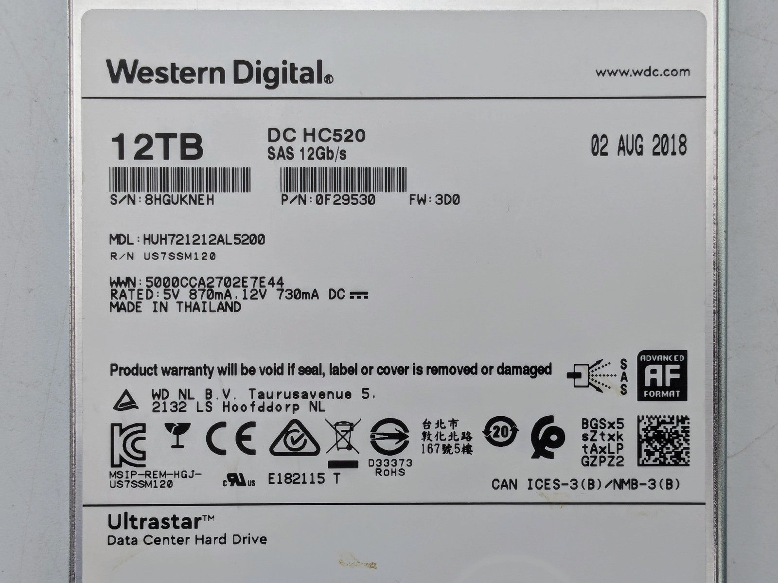 12TB HGST WD DC HC520 7200RPM SAS 12GB/s 3.5" Internal HDD 0F29530 *READ*