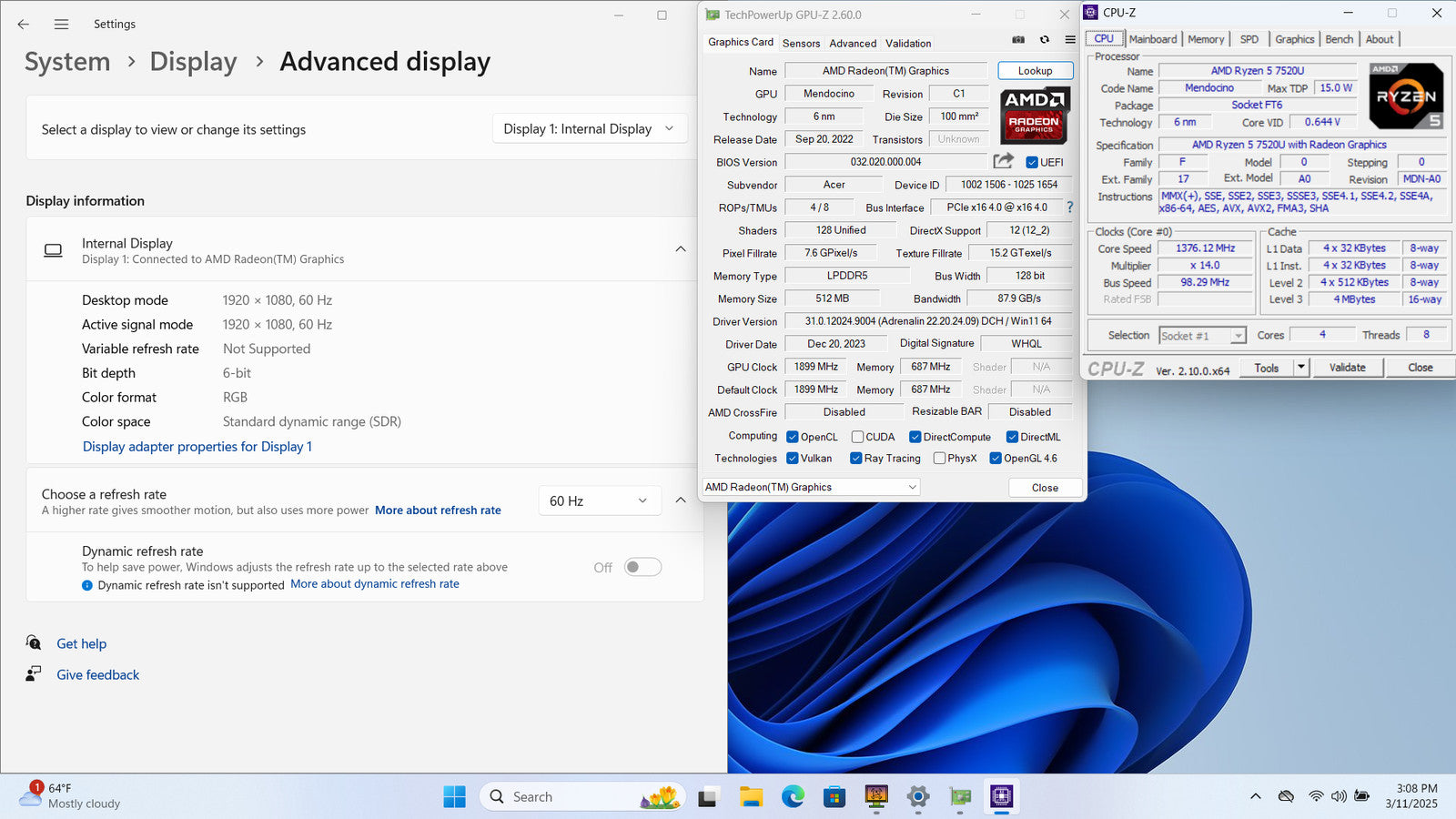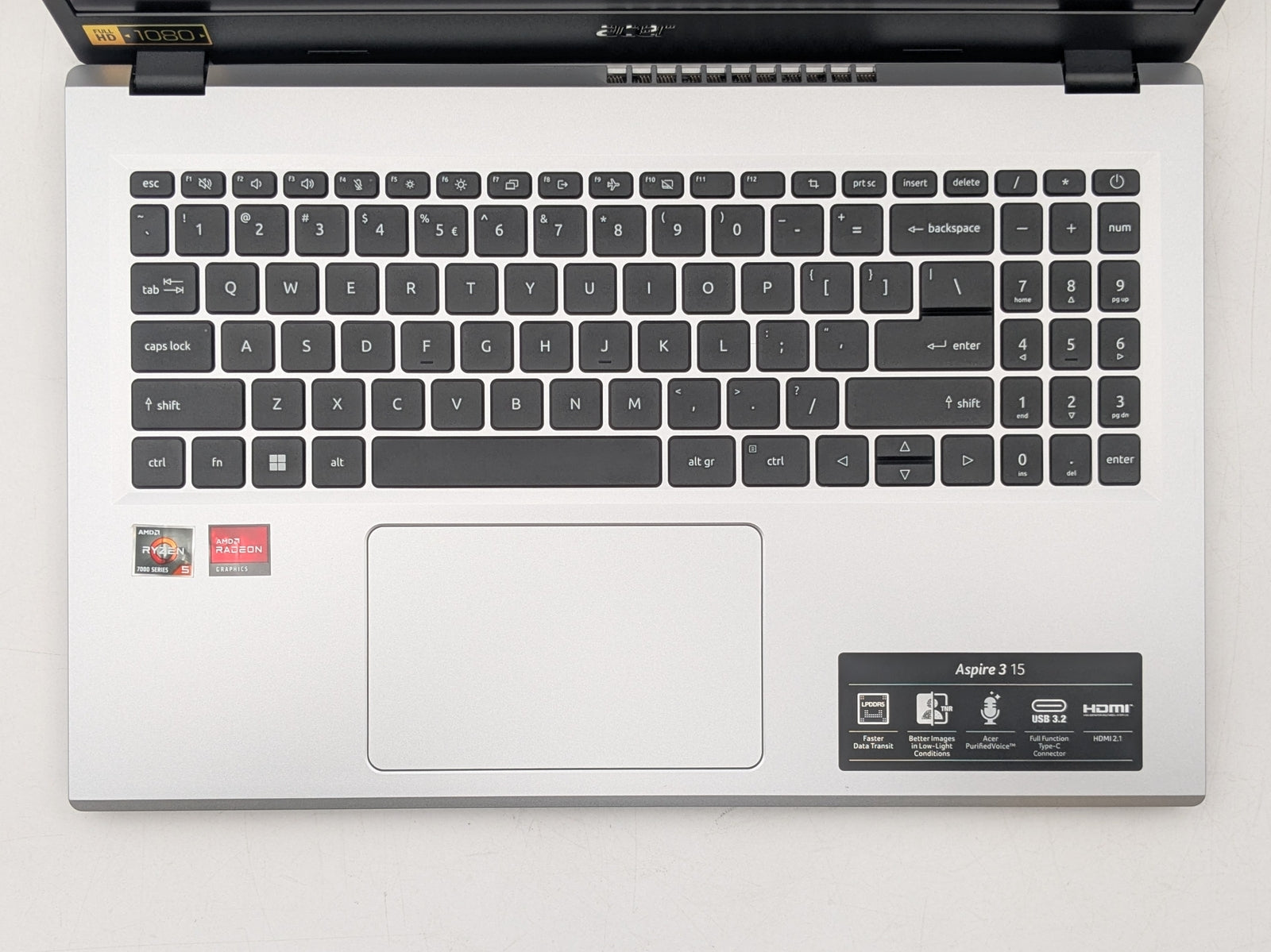ACER ASPIRE 3 15 15" FHD Touch RYZEN 5 7520U 1TB SSD 16GB W11 Webcam