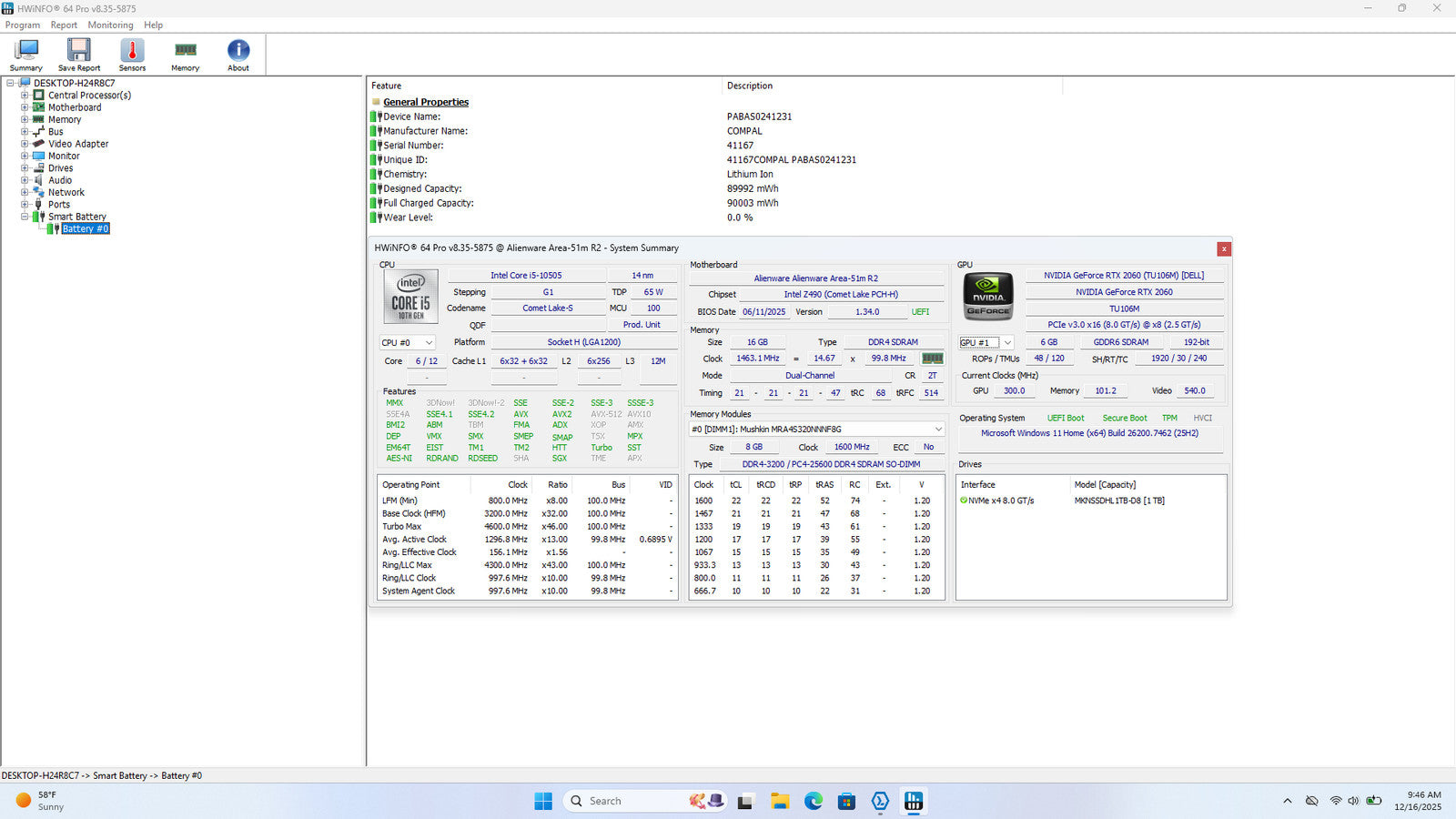 ALIENWARE AREA 51M R2 17.3" FHD 360Hz I5-10505 1TB SSD 16GB W10 RTX 2060 *READ*