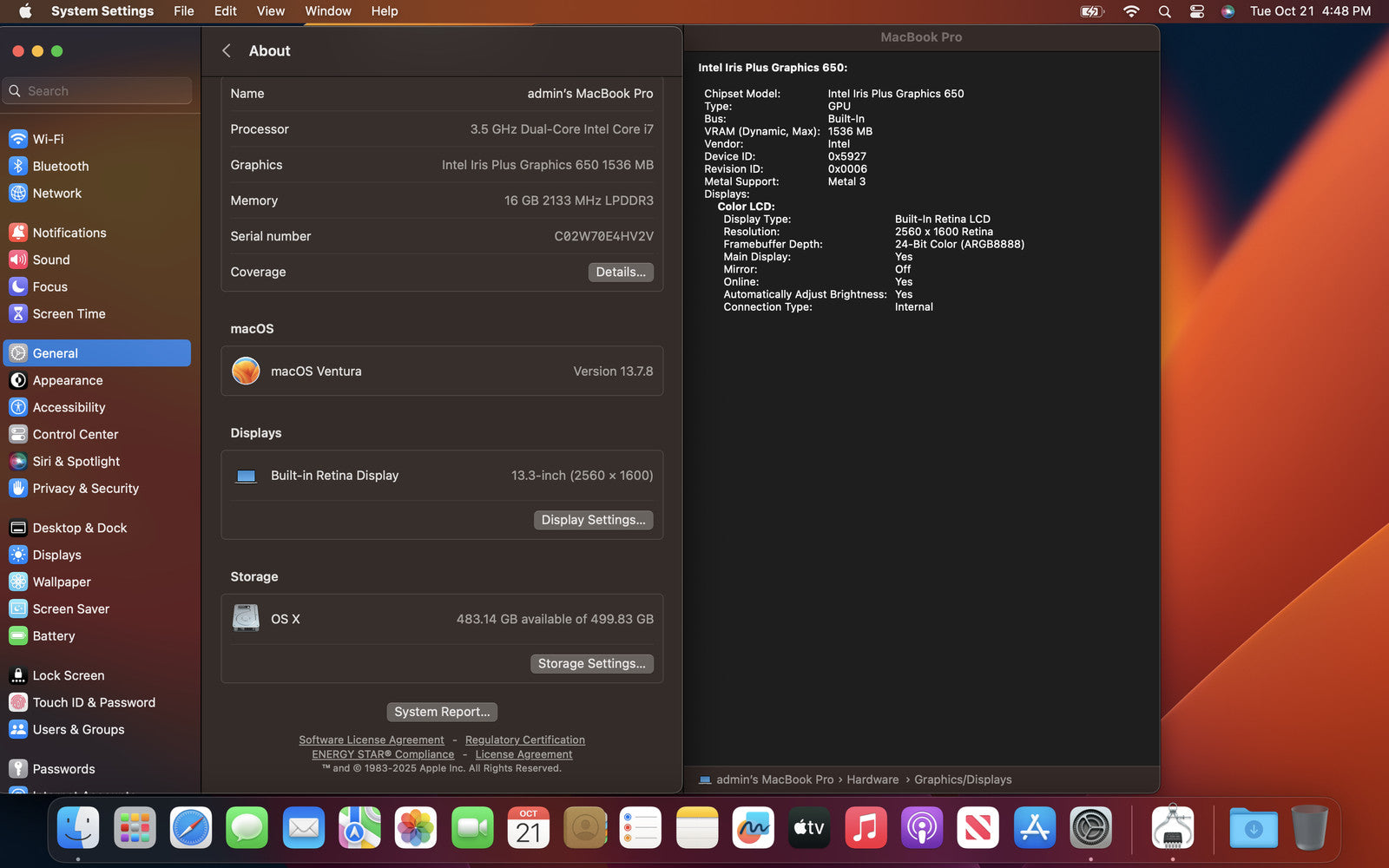 Apple MacBook Pro 13-inch, 2017 13" I7-7567U 512GB SSD 16GB Iris Webcam *READ*