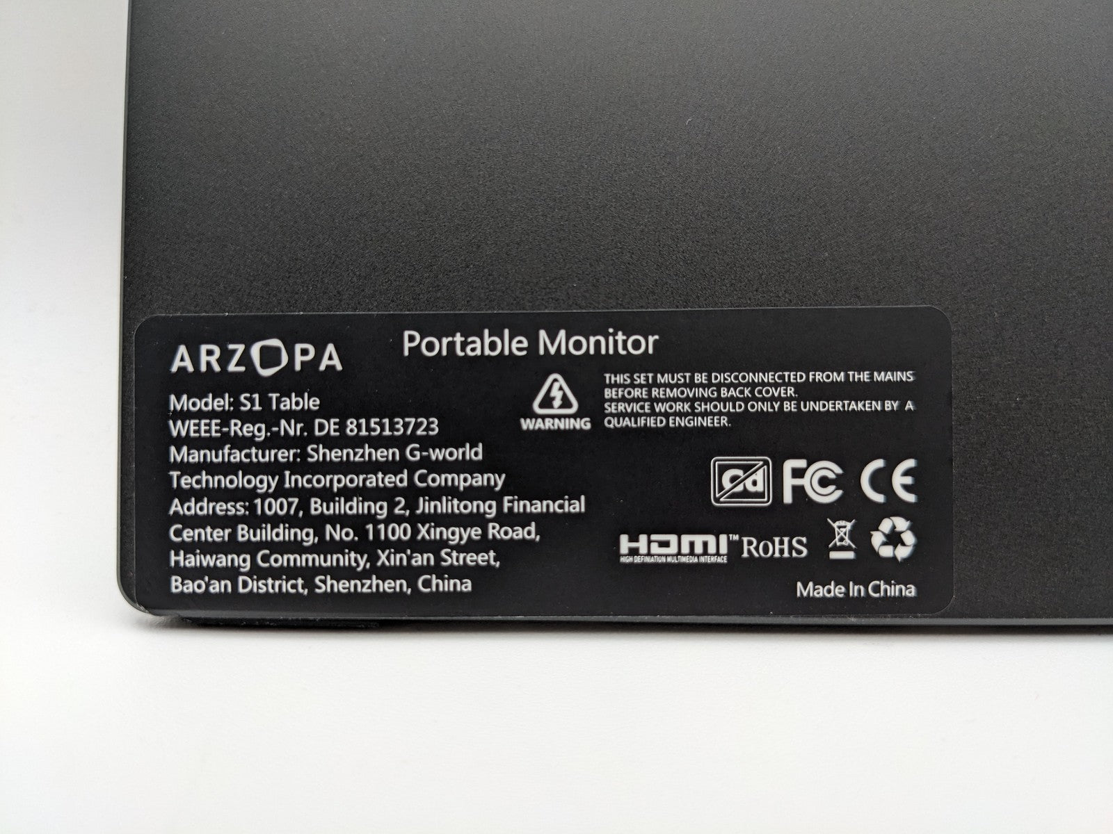 Arzopa S1 Table Portable 15.6" 1080p FHD Monitor USB-C HDMI Computer Display