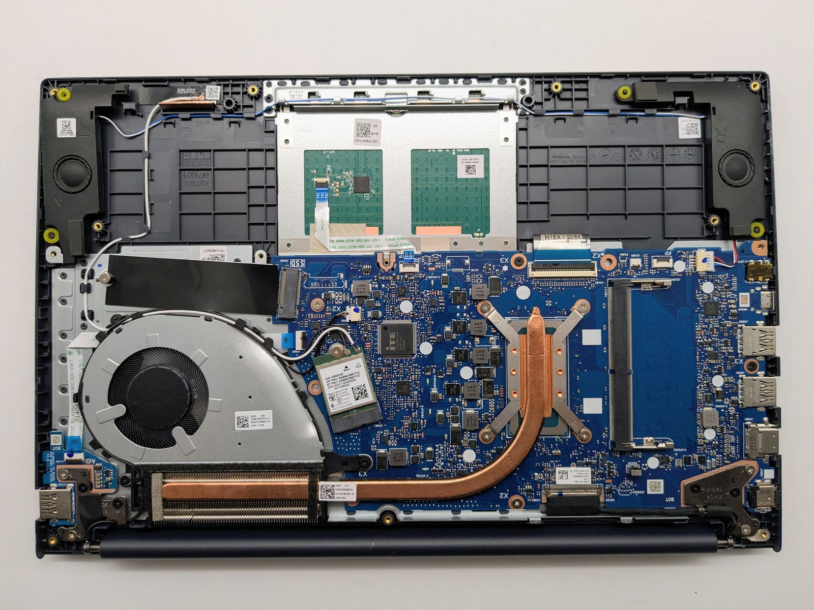 Functional Defects: No SSD/Battery. | Battery connector on the motherboard is missing/broken. | Motherboard S/N does not match bottom cover service tag.