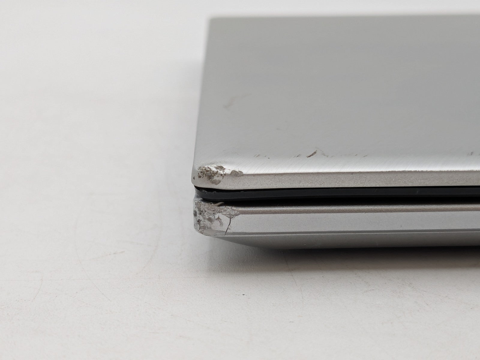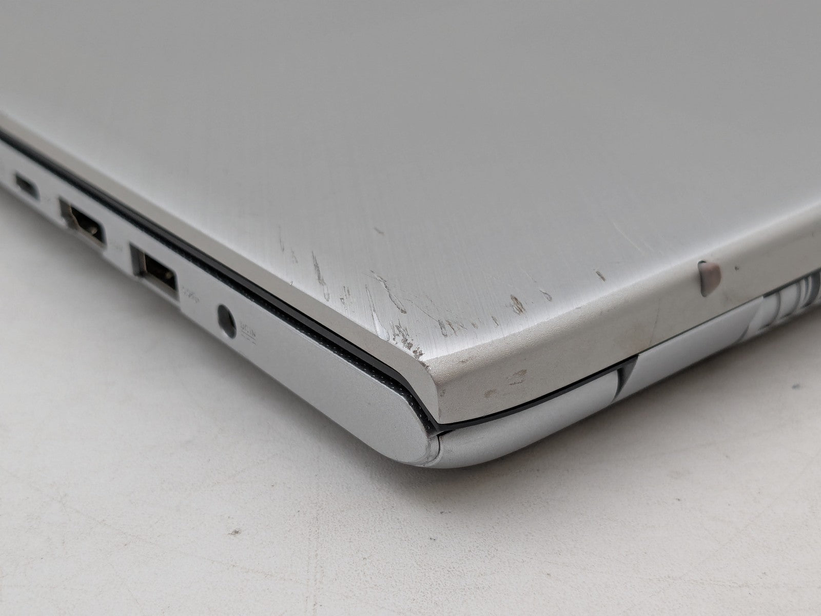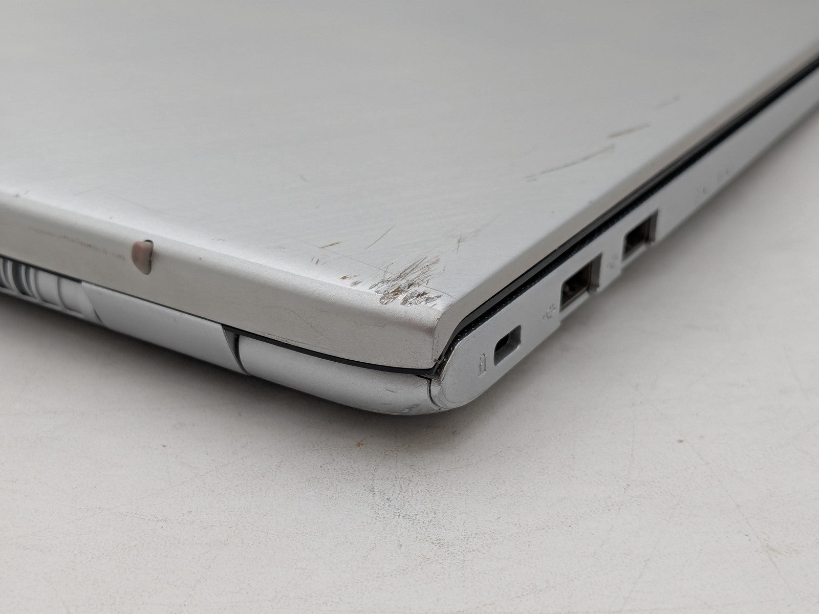 Cosmetic Defects: Interior: Display has visible scratches and/or keyboard imprinting. Display bezel cracked, upper right corner. Heavy wear/scratches on palmrest. Exterior: Top and bottom covers have heavy wear/scratches/dents.