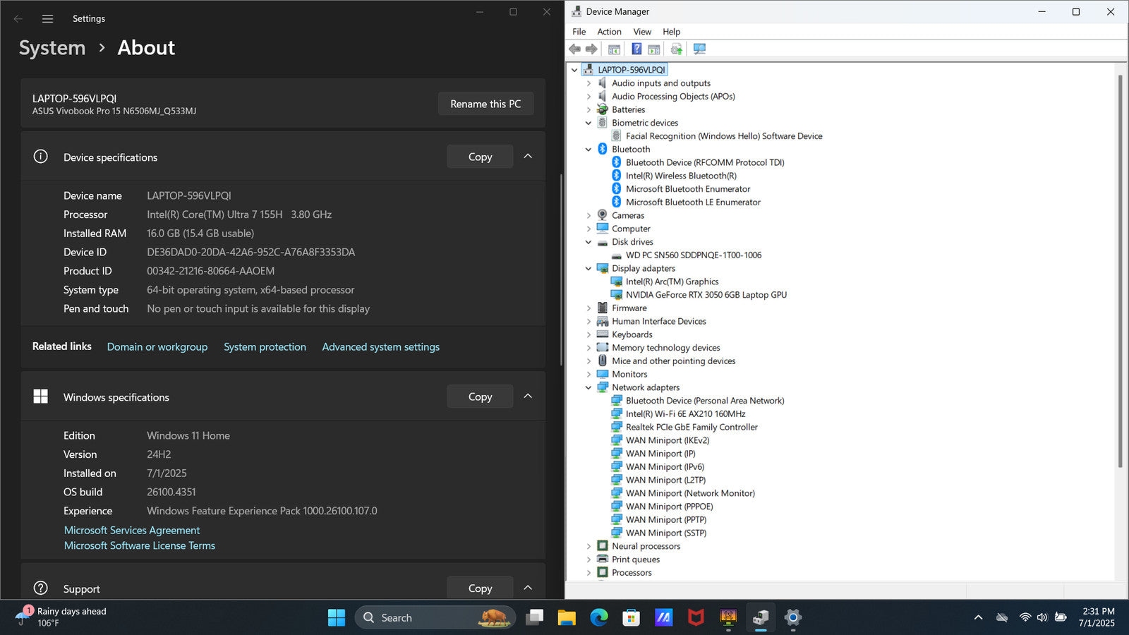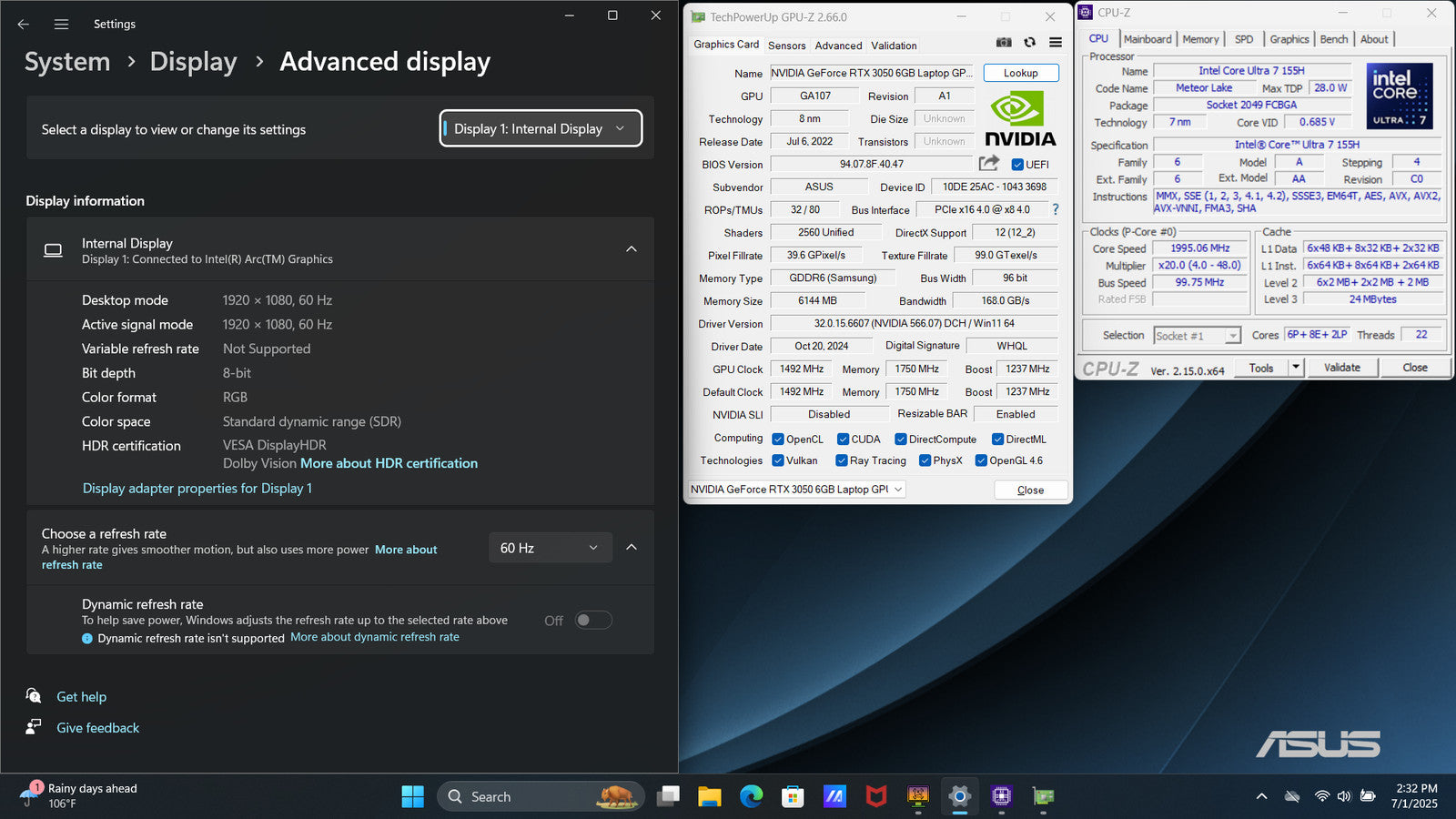 ASUS Vivobook Pro OLED 15" FHD ULTRA 7 155H 1TB SSD 16GB W11 GeForce RTX 3050
