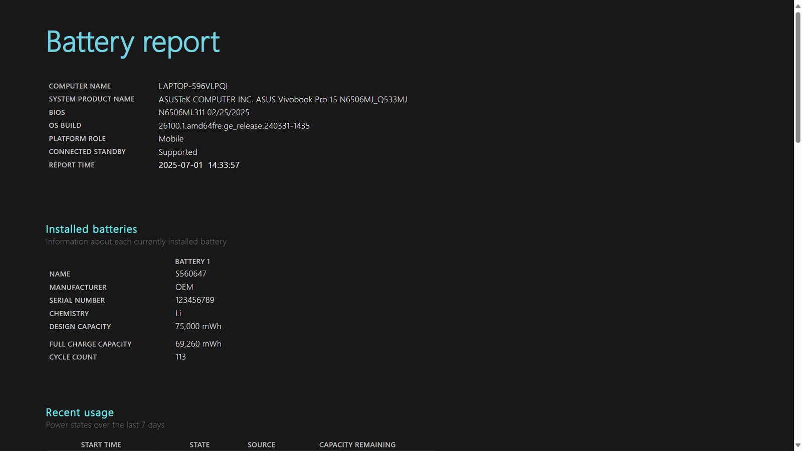 Battery Condition: 69,260/75,000 mWh 92.35%