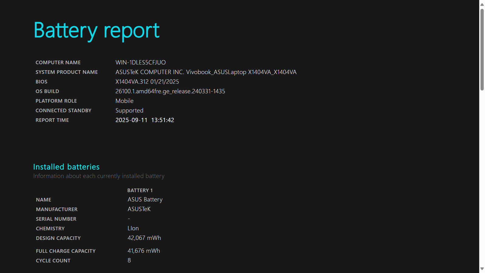 Battery Condition: 41,676/42,067 mWh 99.07%