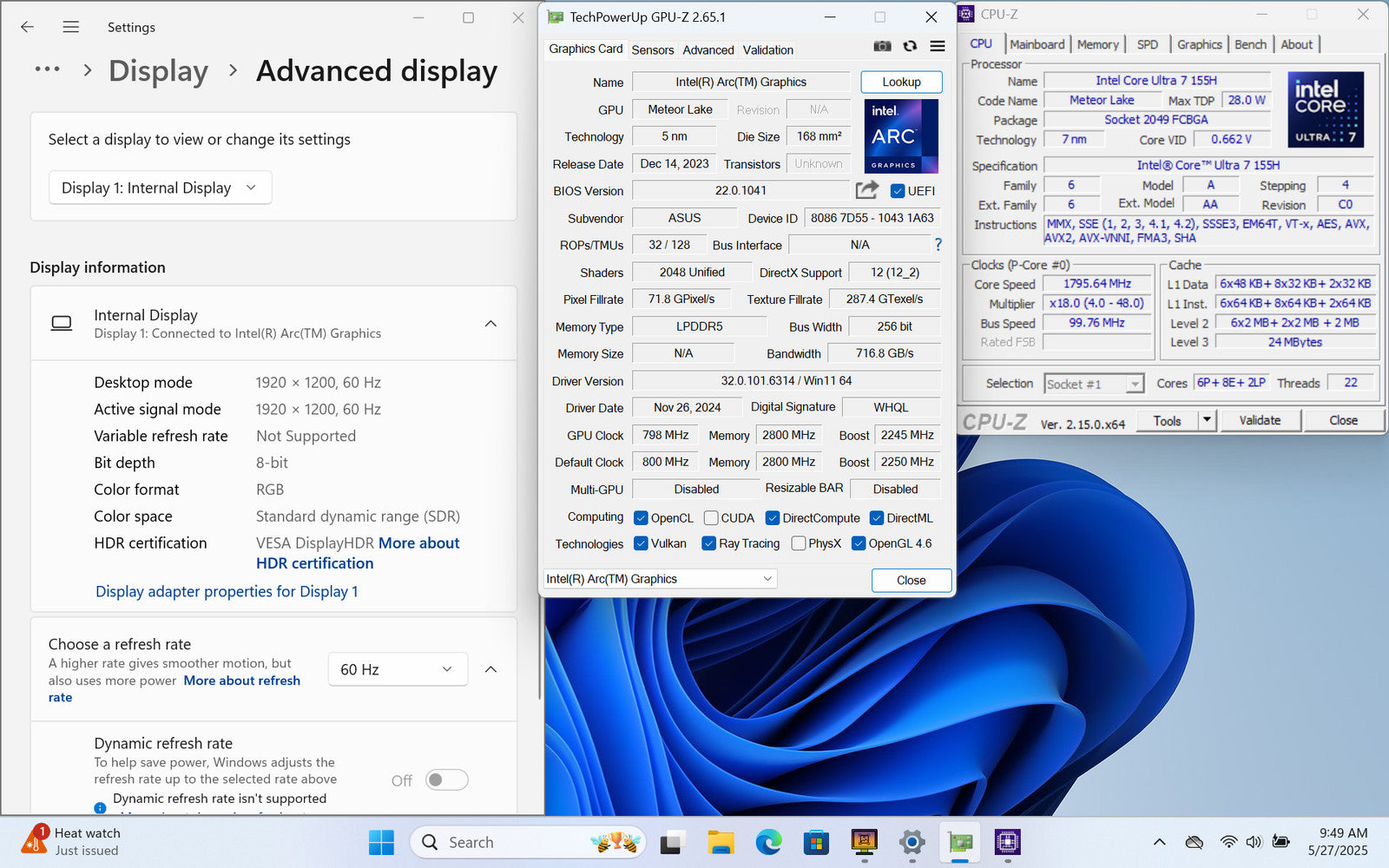ASUS Zenbook 14 OLED 14" FHD+ Touch ULTRA 7 155H 1TB SSD 16GB W11 Webcam IRCam