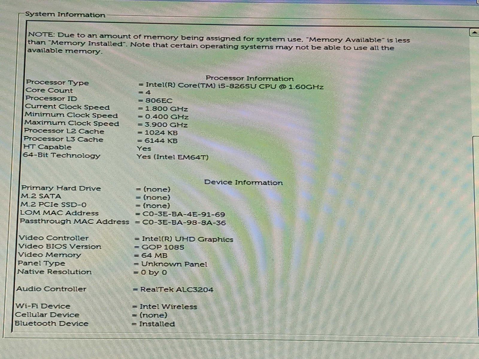 Dell LATITUDE 5400 14" I5-8265U Motherboard Palmrest Top Assembly Battery 03CY3R