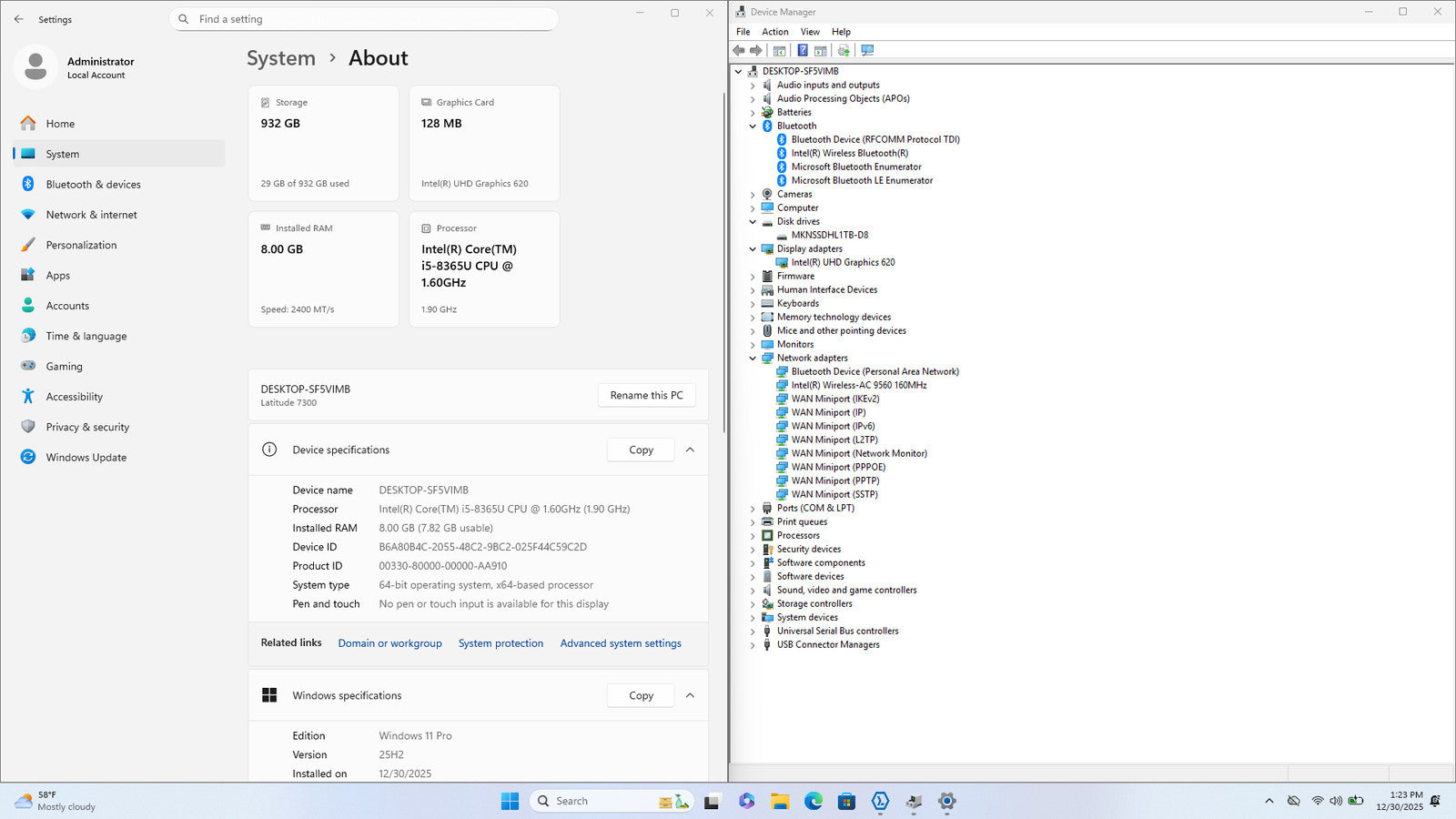 Dell Latitude 7300 QHD I5-8365U 256GB SSD 8GB W11P Webcam Backlit 119Hz